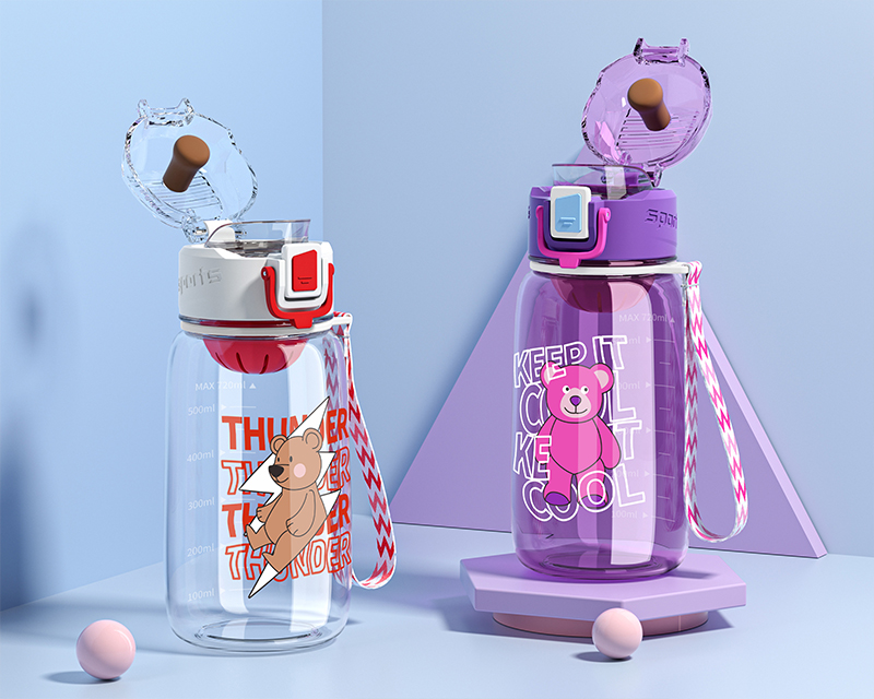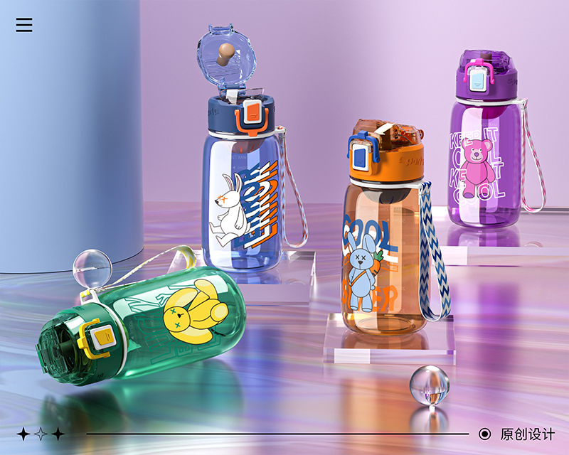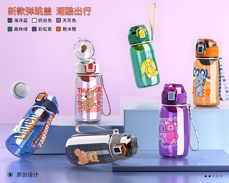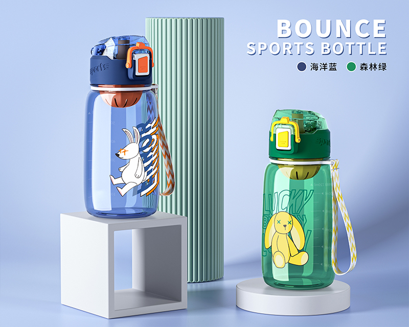 样品星兔创意卡通水杯儿童弹跳吸管杯可爱运动户外背带学生塑料杯