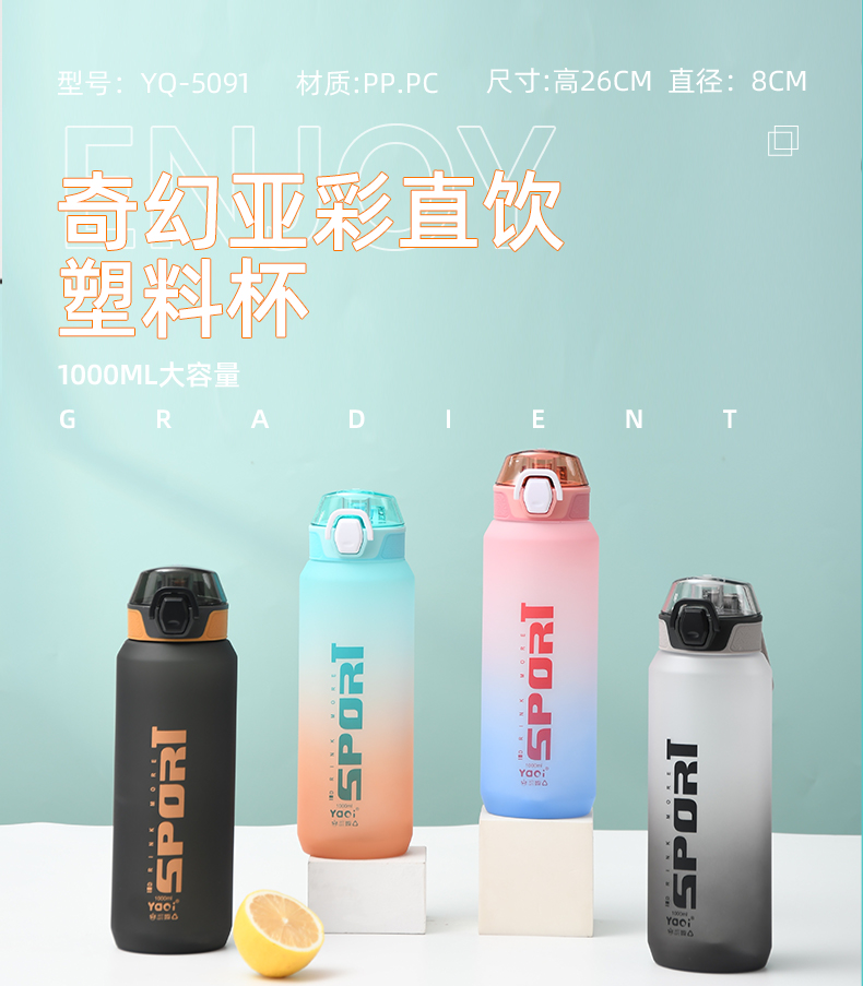 1000ML立卓畅饮炫彩运动塑料杯(OPP袋)