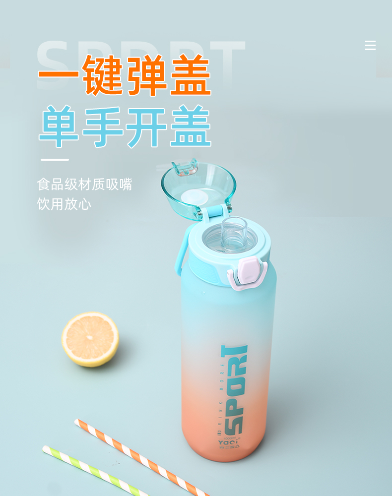 850ML亚奇乐运动塑料杯户外便携弹跳盖水杯(OPP袋)