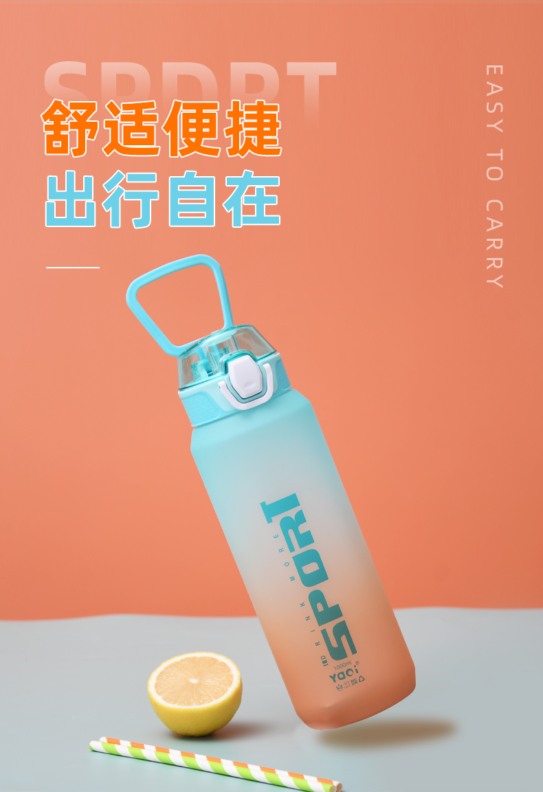 1000ML立卓双提手炫彩运动塑料杯大容量户外健身水杯