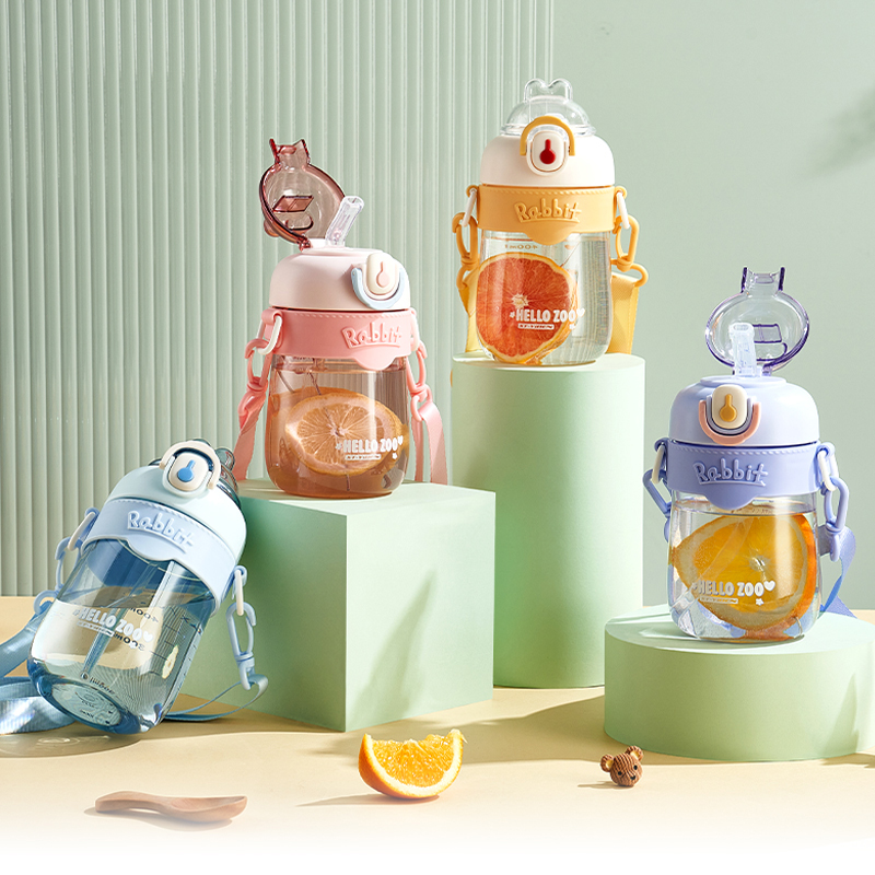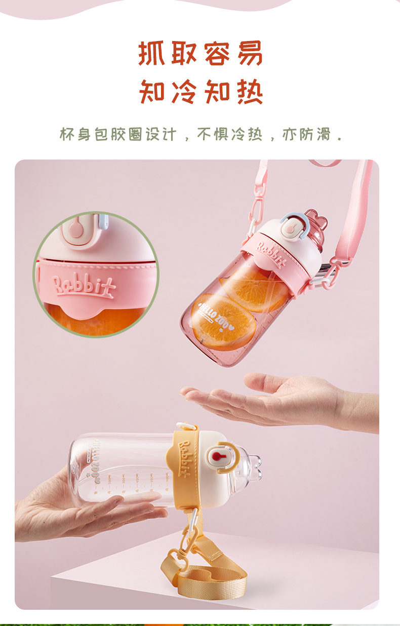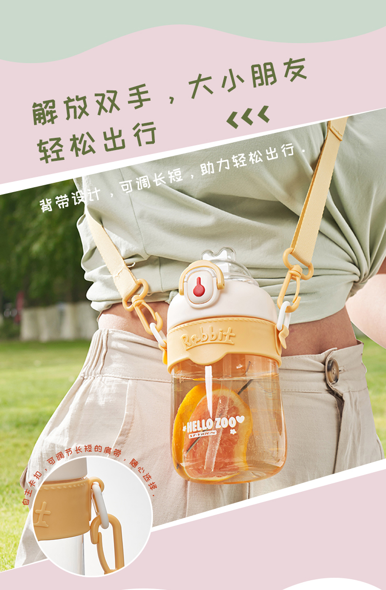 样品星兔创意卡通水杯儿童弹跳吸管杯可爱运动户外背带学生塑料杯