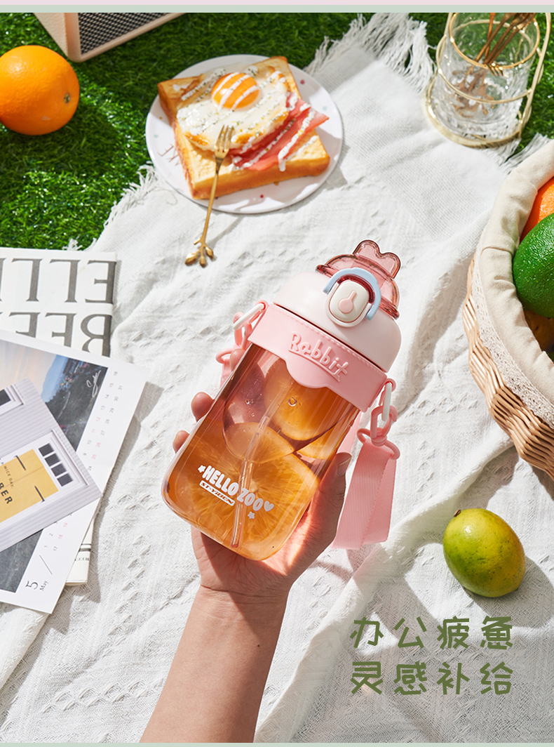 样品星兔创意卡通水杯儿童弹跳吸管杯可爱运动户外背带学生塑料杯