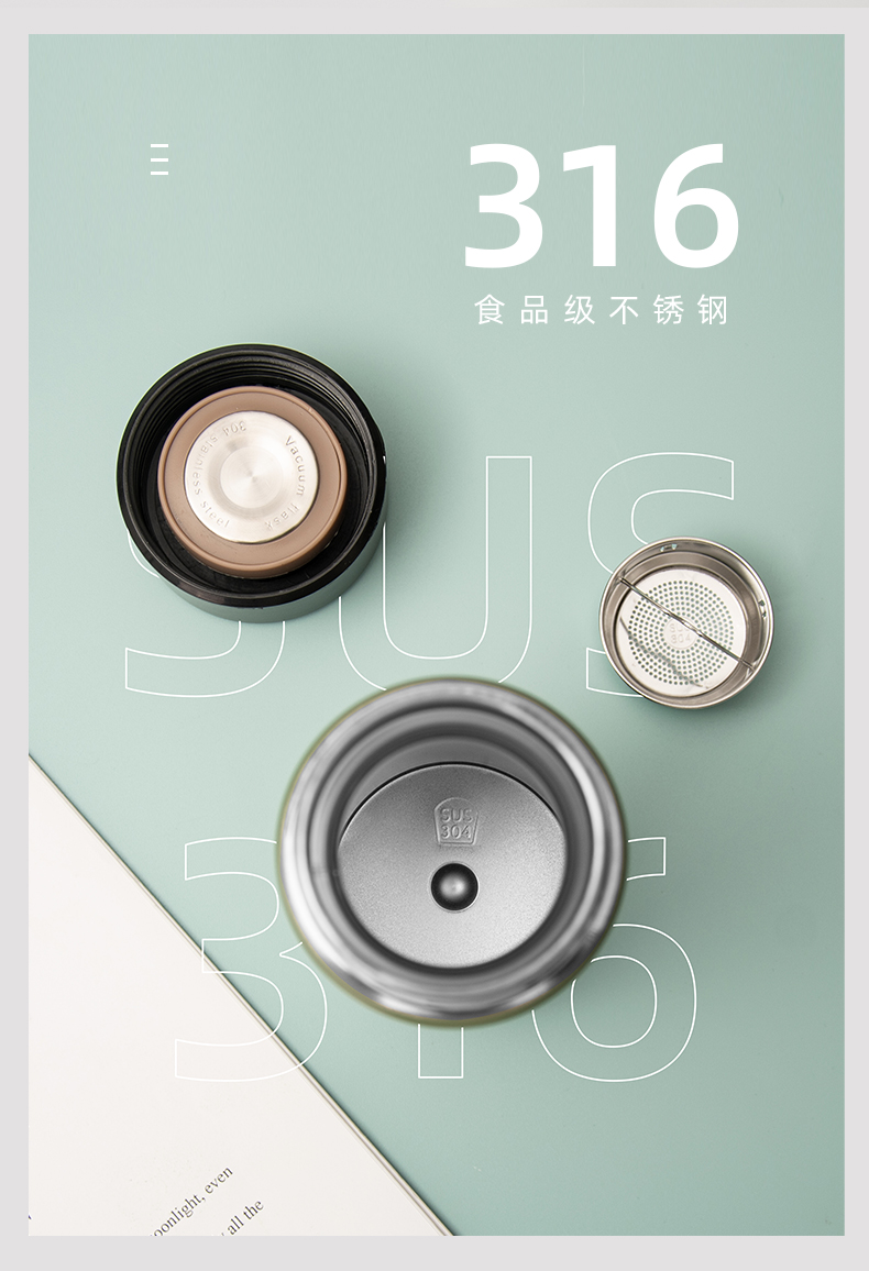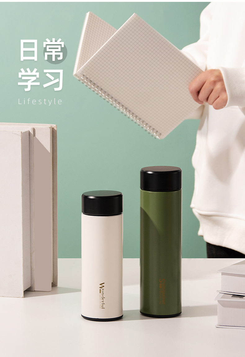 350ML简约酷酷保温杯304不锈钢带茶隔男女士直饮水杯