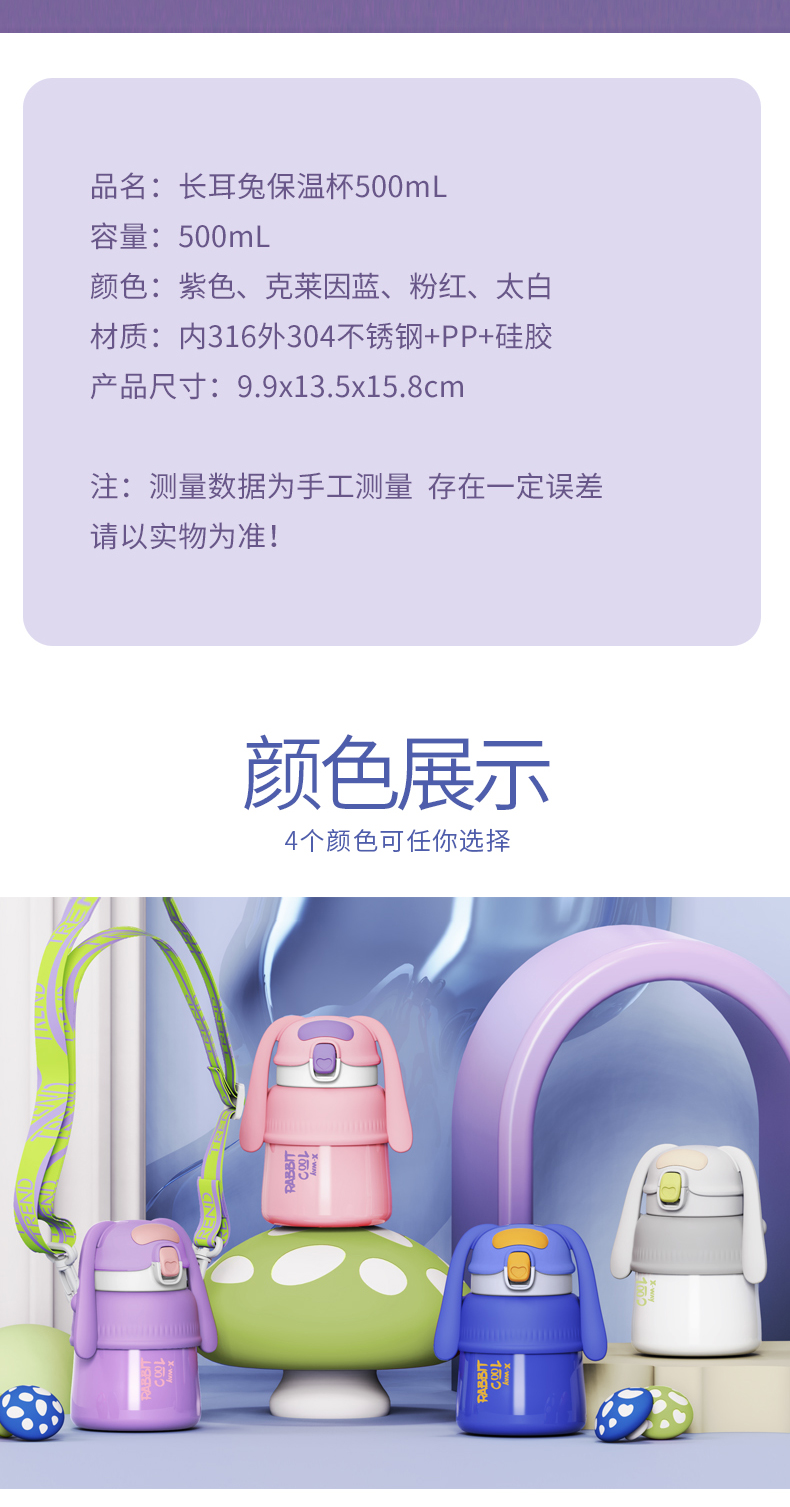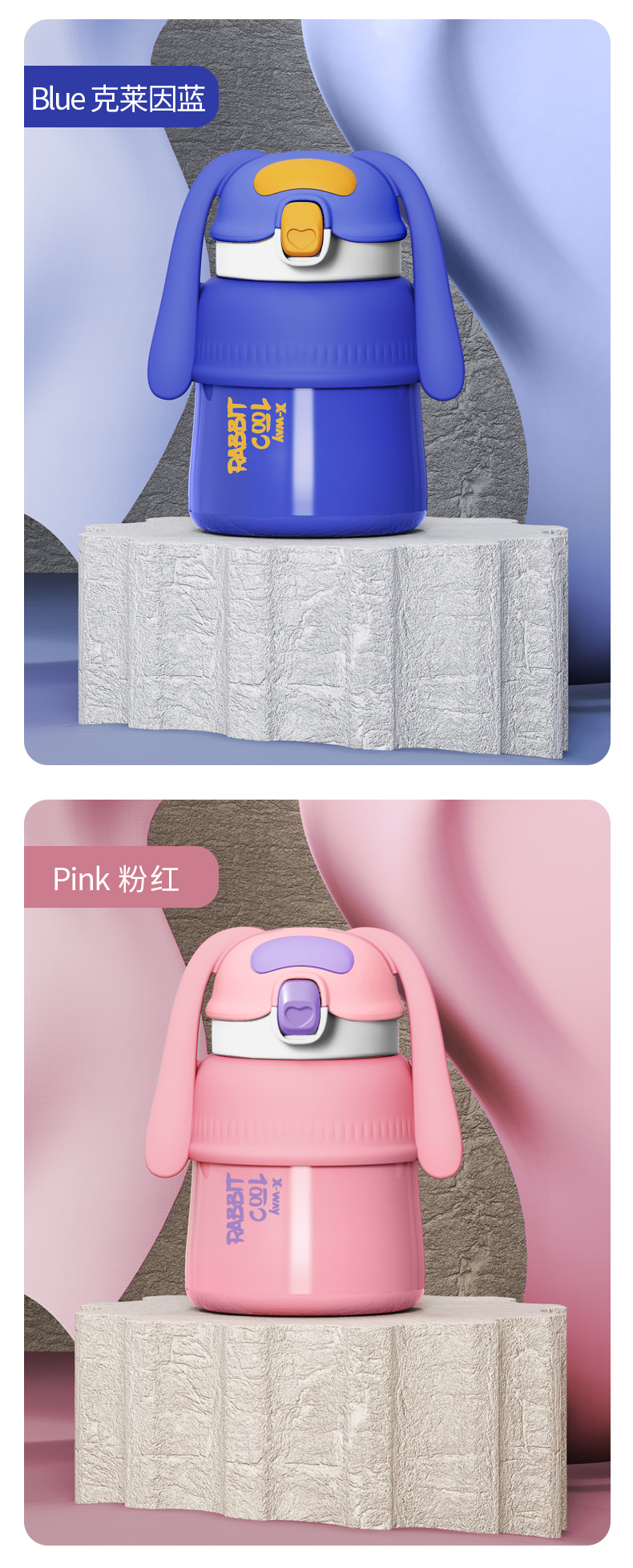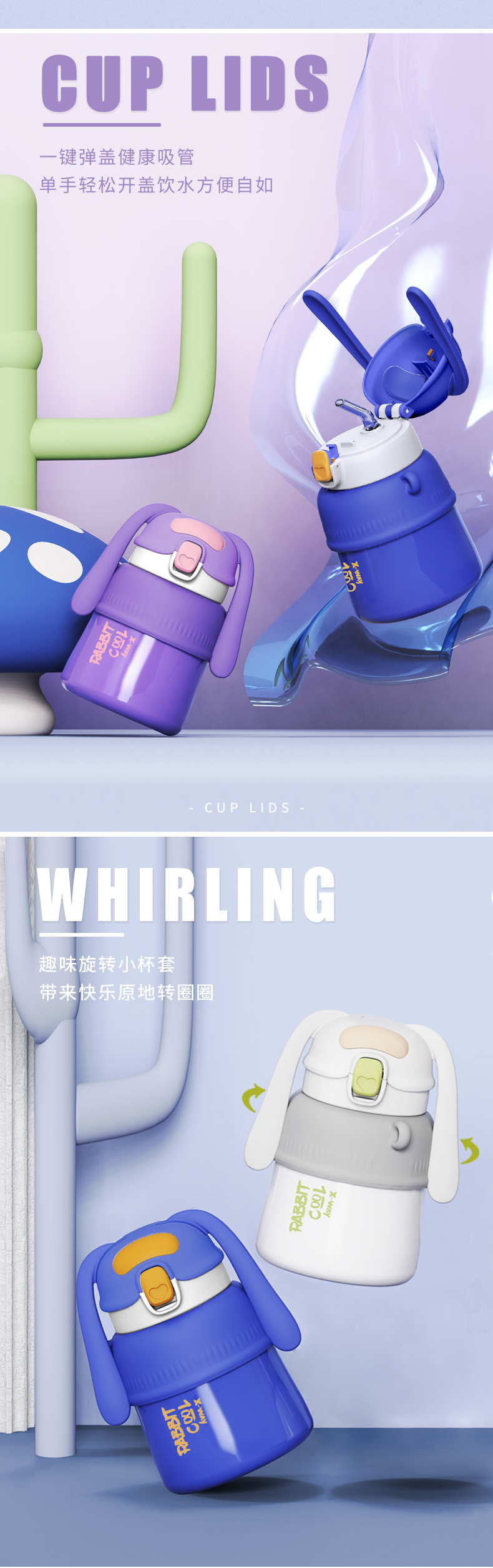 样品星兔创意卡通水杯儿童弹跳吸管杯可爱运动户外背带学生塑料杯