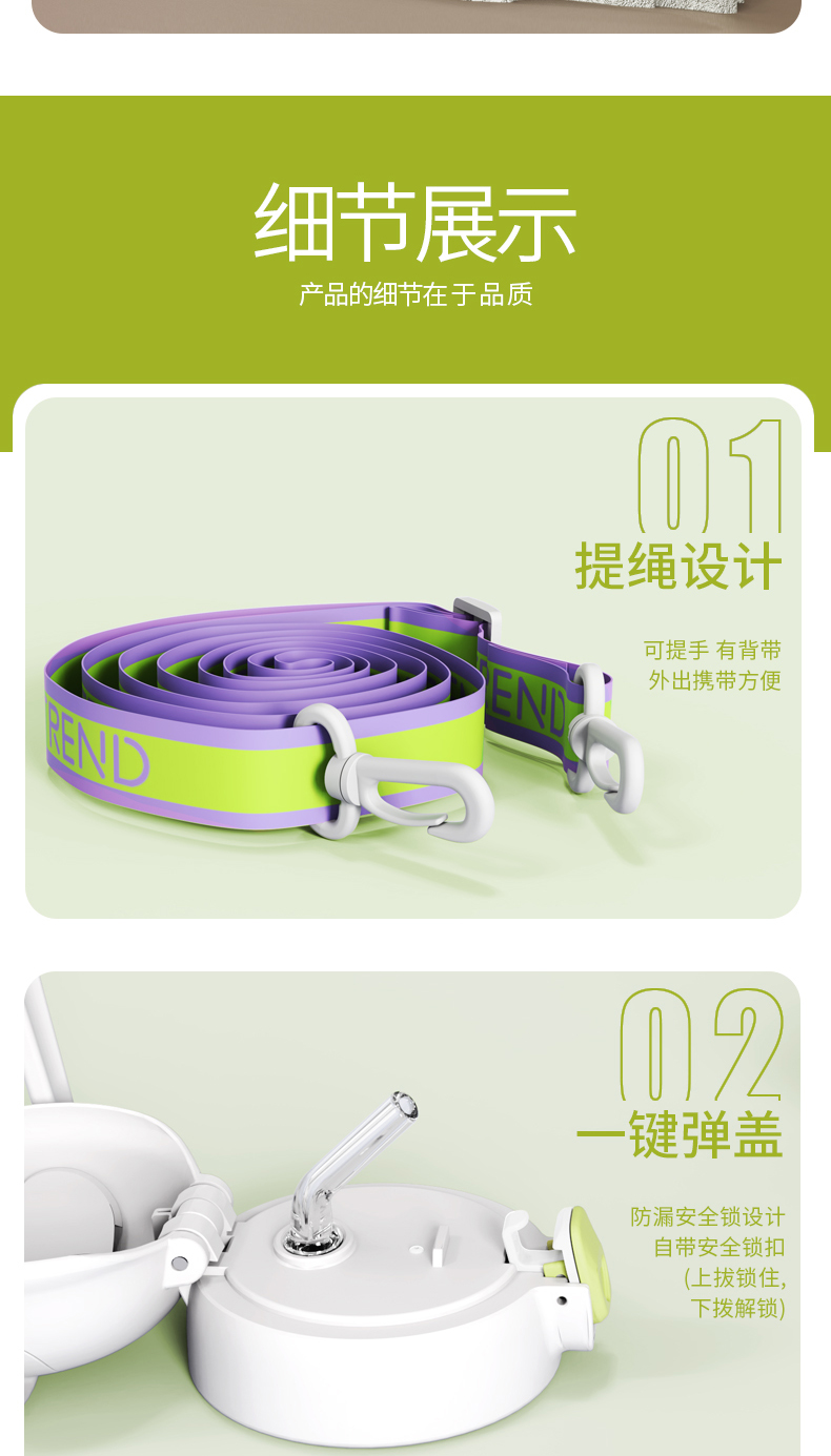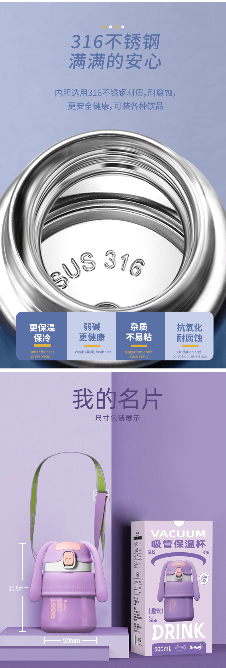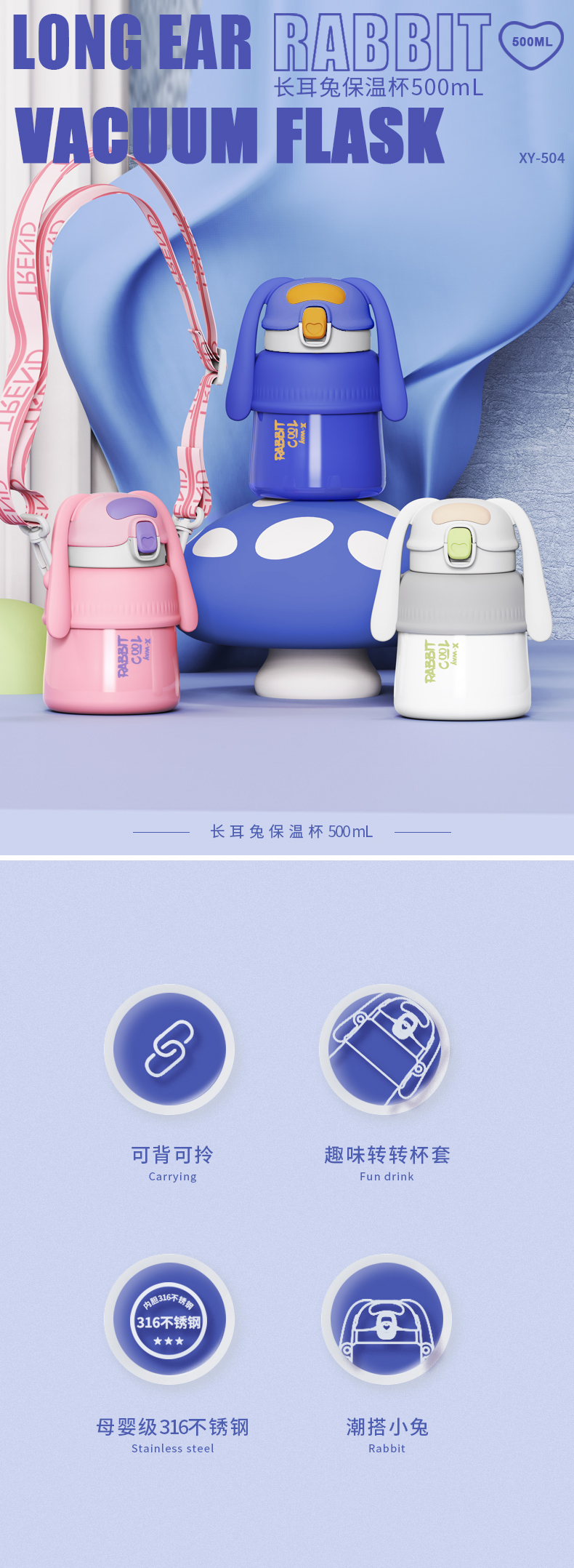 样品星兔创意卡通水杯儿童弹跳吸管杯可爱运动户外背带学生塑料杯