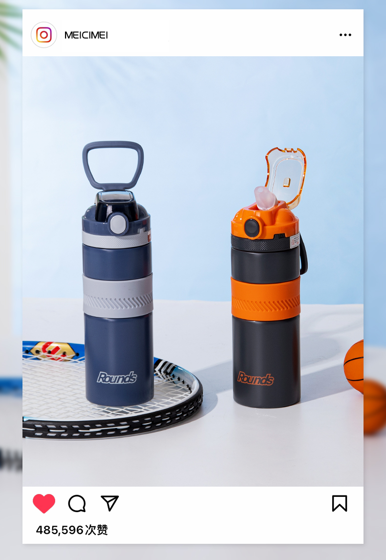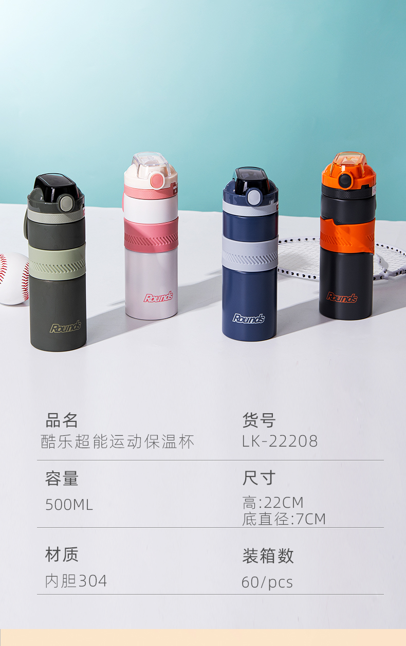 500ML乐享运动保温杯304不锈钢个性潮流弹跳盖直饮杯