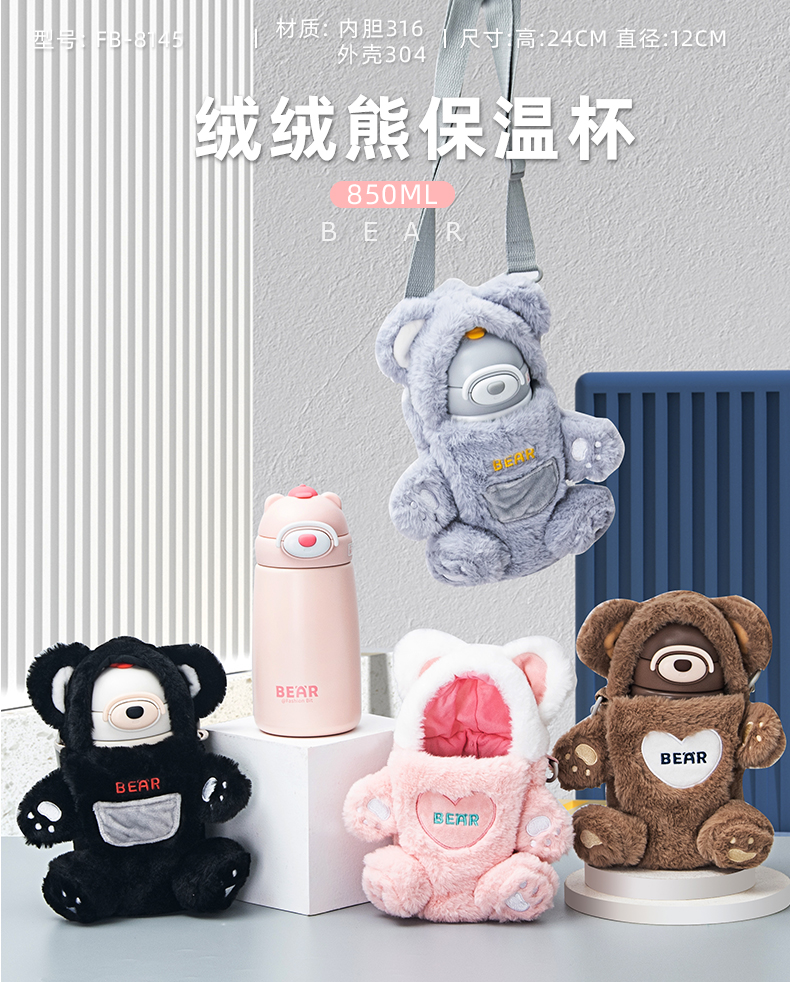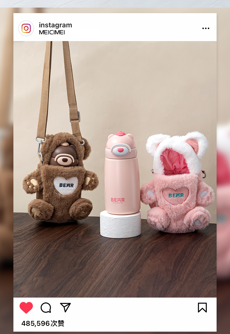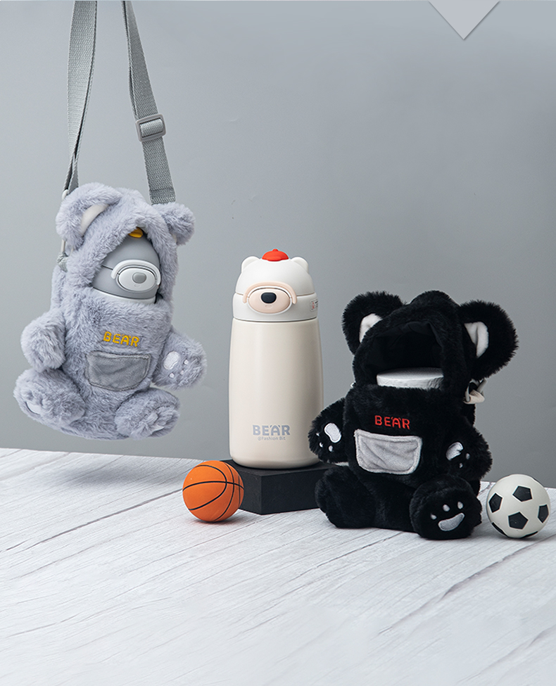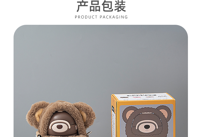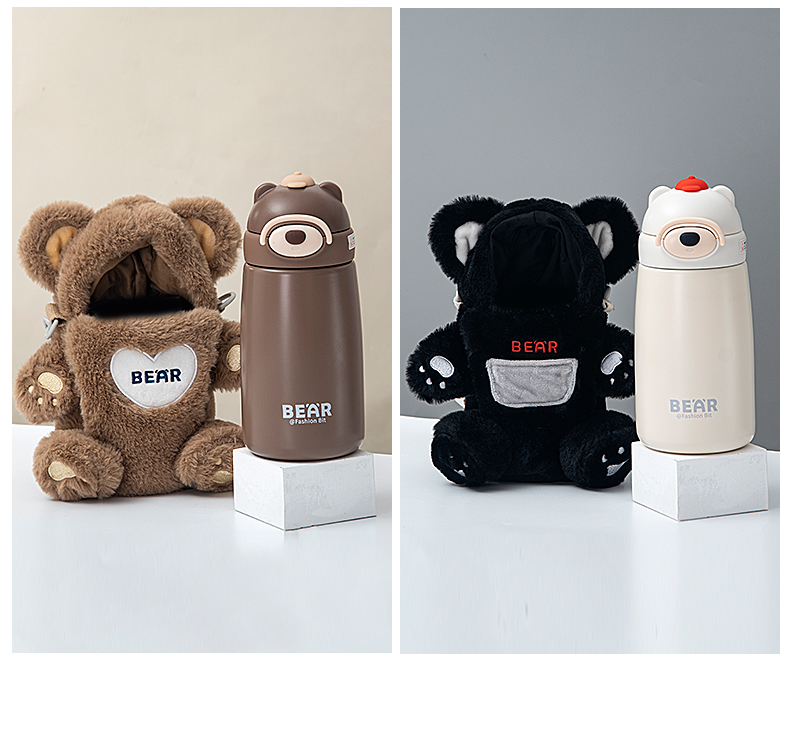480ML萌酱零食团保温杯可爱公仔背带水杯弹盖吸管杯