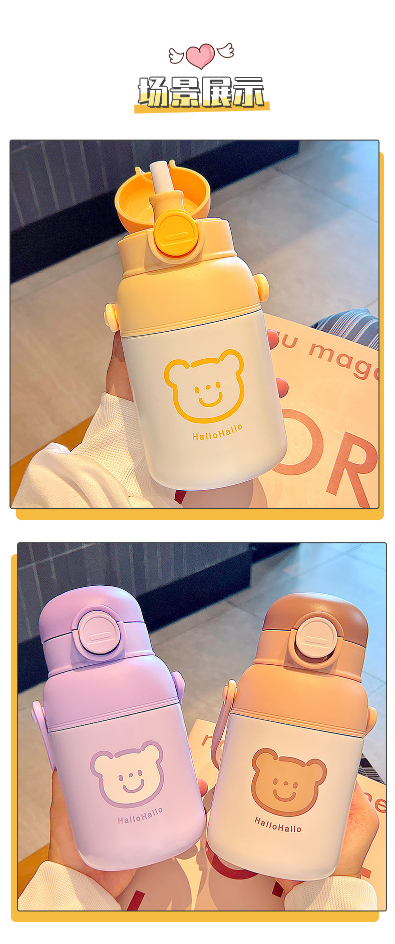 510ML小团子保温杯304不锈钢卡通可斜跨弹跳吸管杯