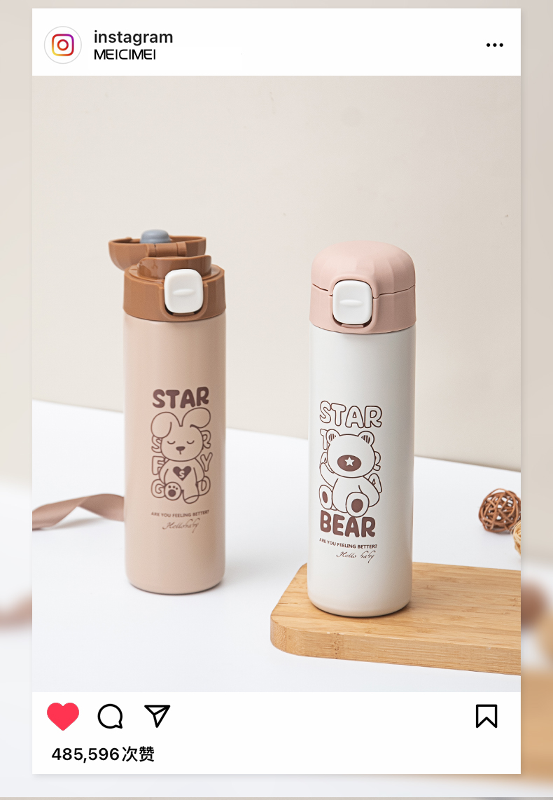 450ML福气满满弹跳保温杯304不锈钢小清新可爱水杯