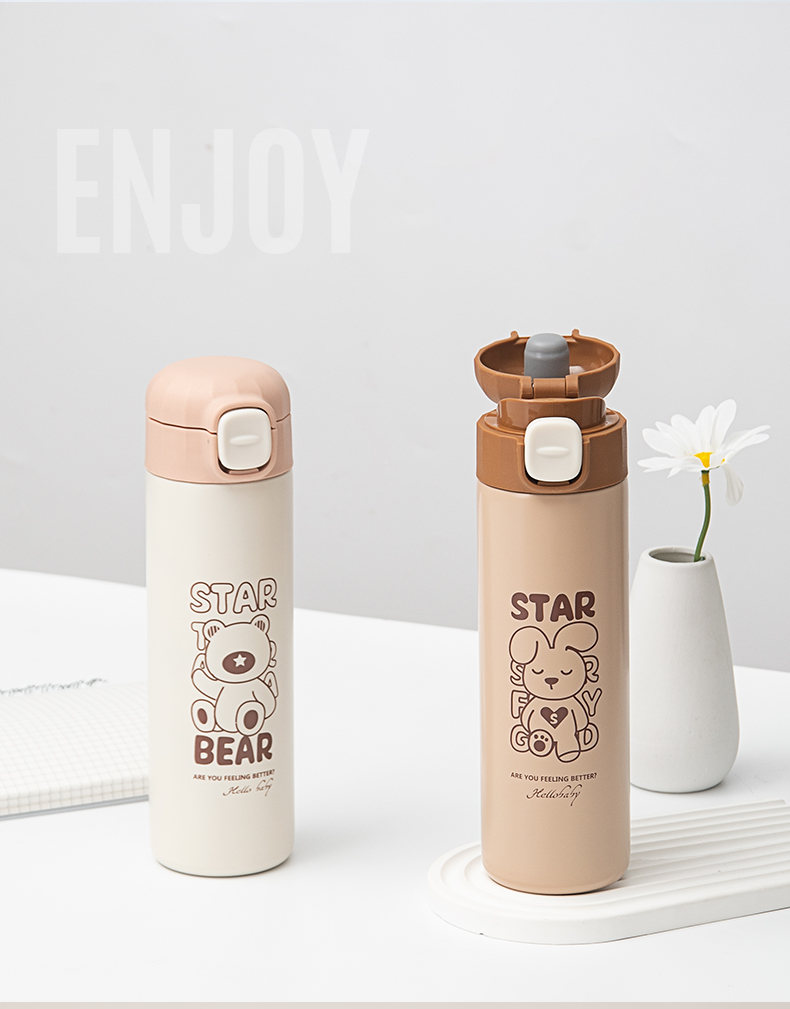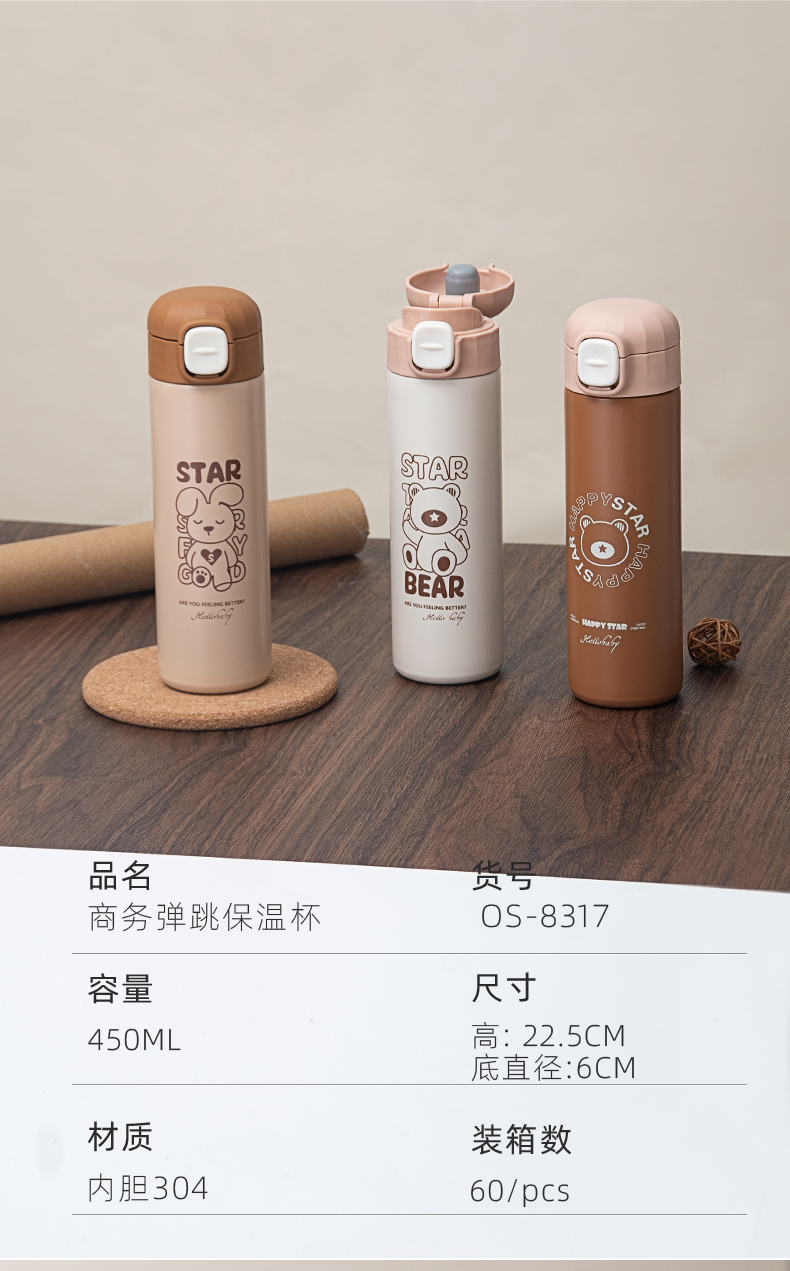 450ML酷酷动物弹跳保温杯304不锈钢便携直饮水杯