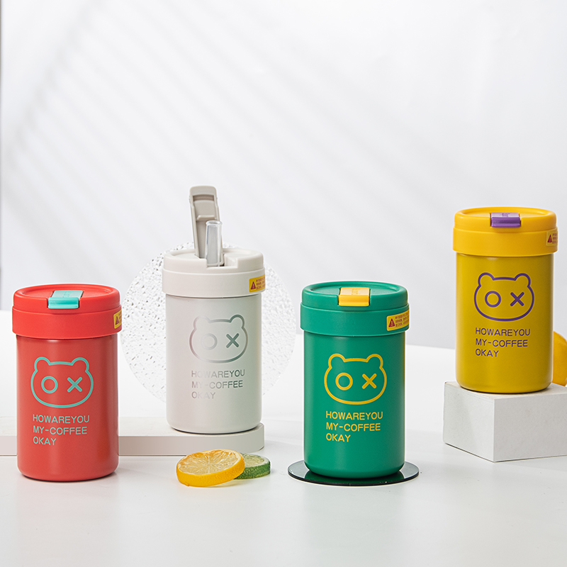 400ML创意熊仔咖啡杯316不锈钢简约时尚吸管保温杯