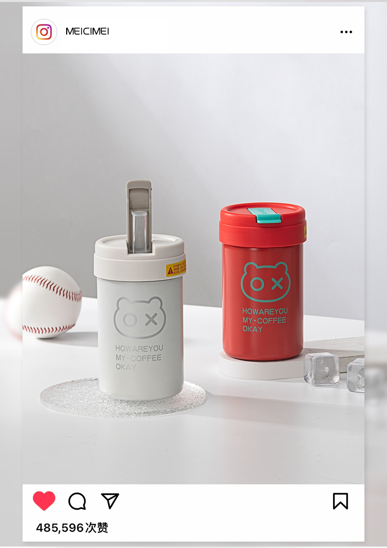 480ML普通盖倾心弹跳保温杯304不锈钢清新简约水杯