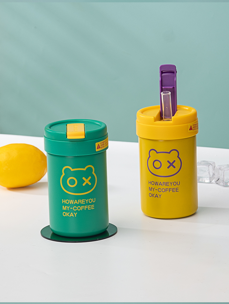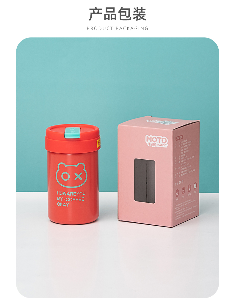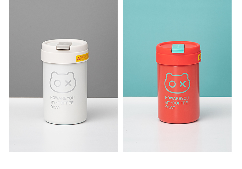 300ML小蒙包吸管弹跳萌熊保温杯304不锈钢简约水杯