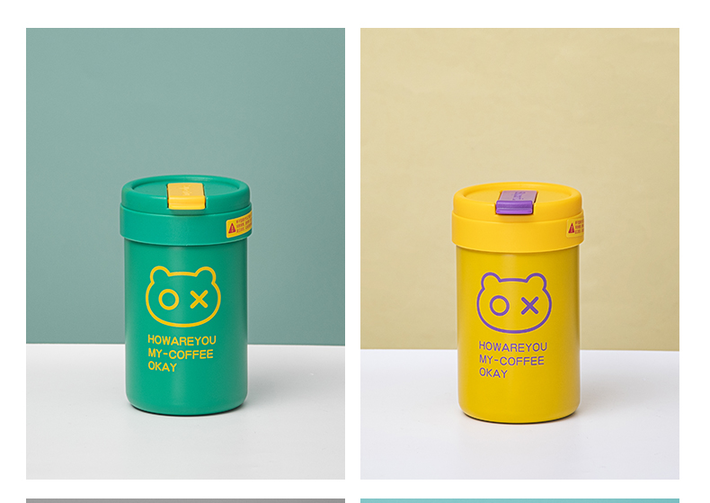 380ML悦酷弹盖萌熊保温杯学生可爱带提绳水杯随手杯