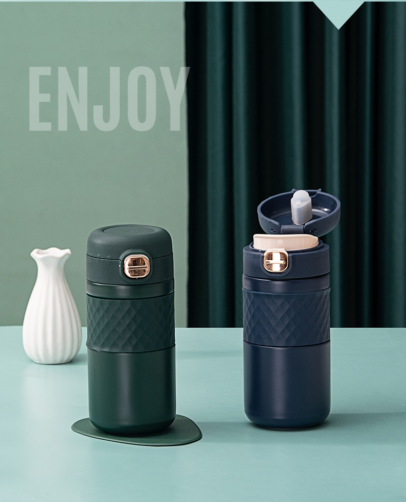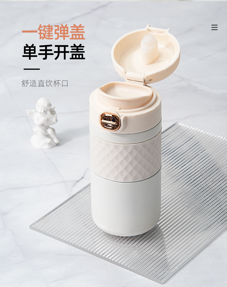 400ML简约英伦显温米豆豆直饮弹跳杯304不锈钢保温杯