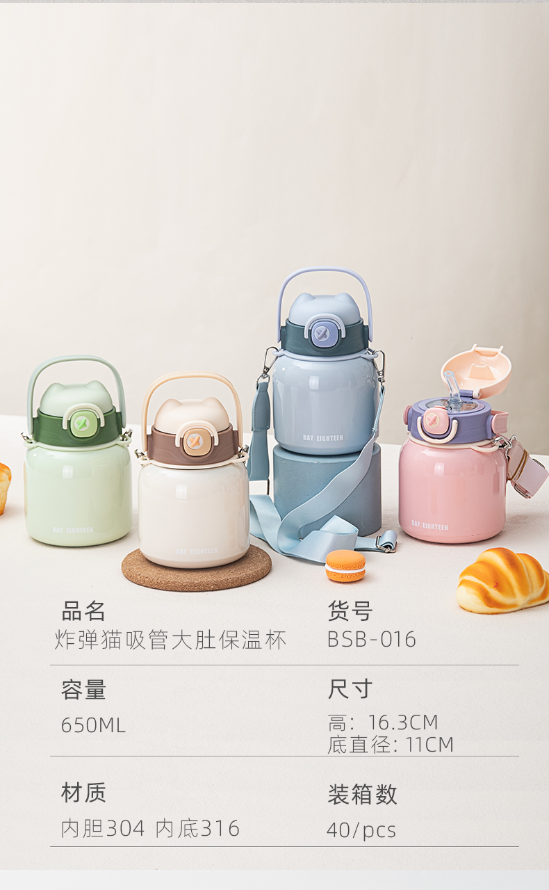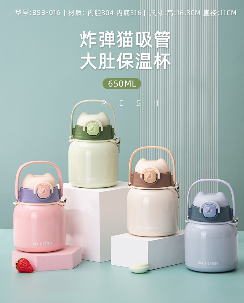 520ML快乐音乐会卡通吸管保温杯304不锈钢可爱大肚杯