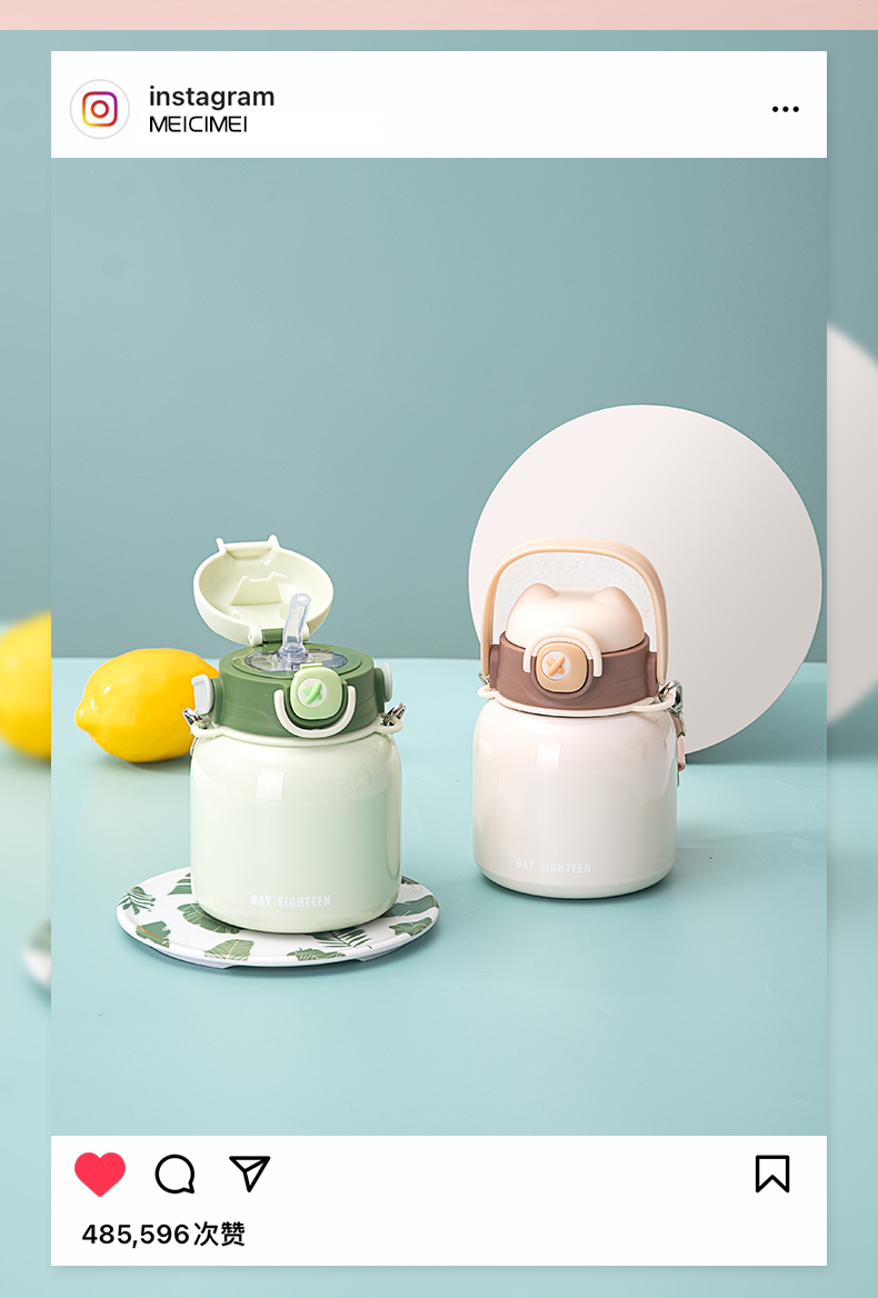 550ML悠言保温杯304不锈钢学生简约可爱少女心杯子