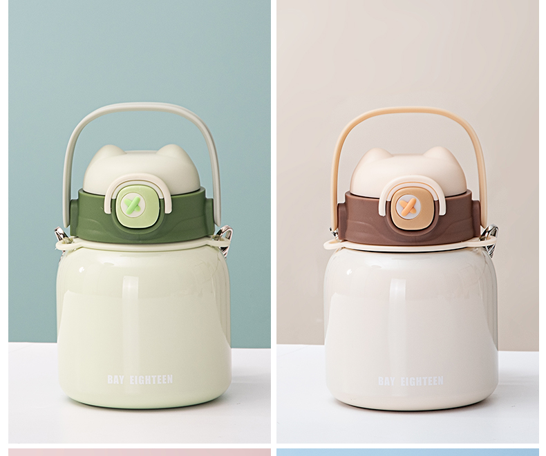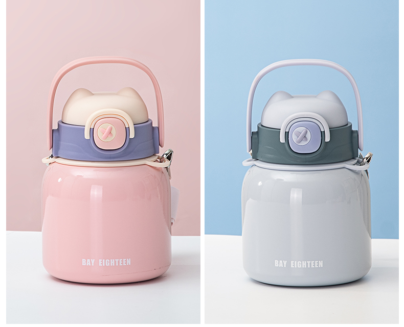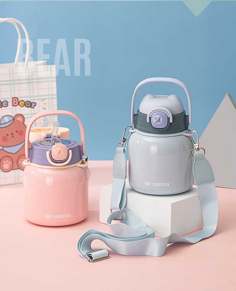 420ML可爱熊兔保温杯304不锈钢网红高颜值吸管水杯