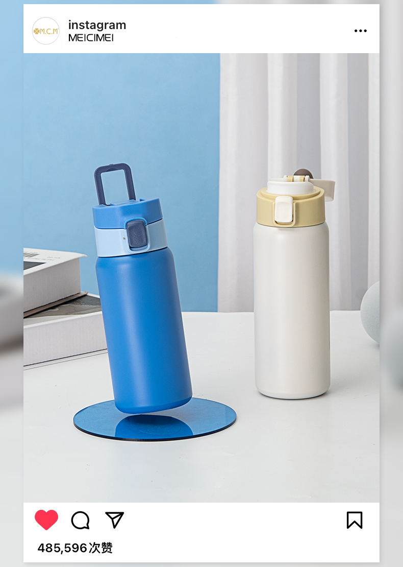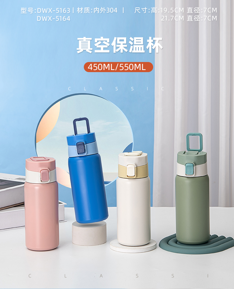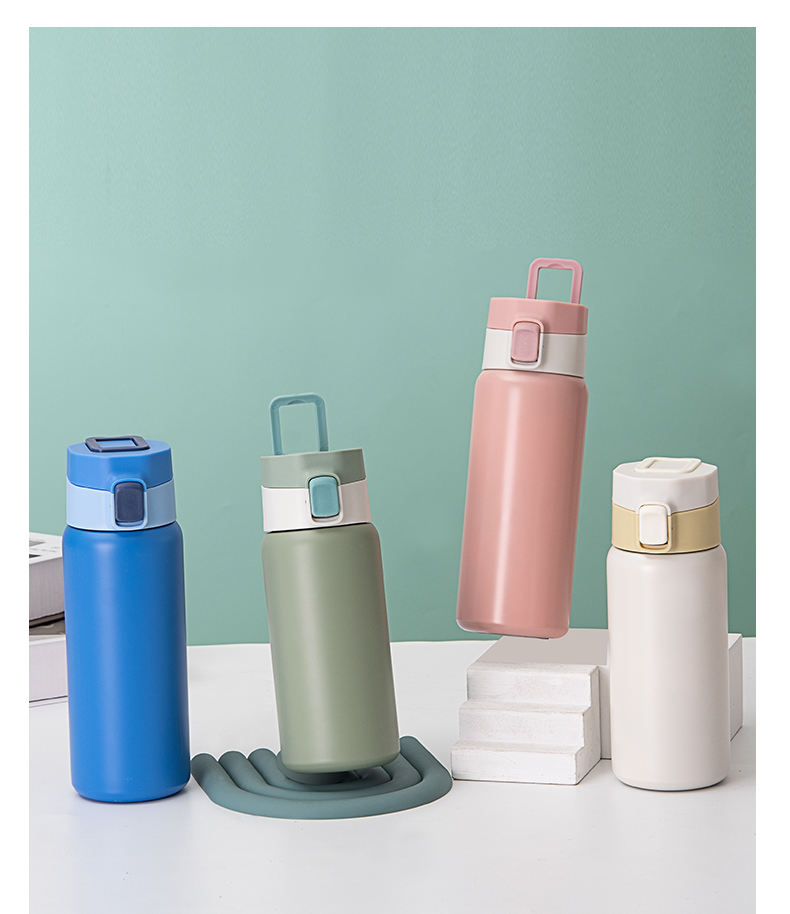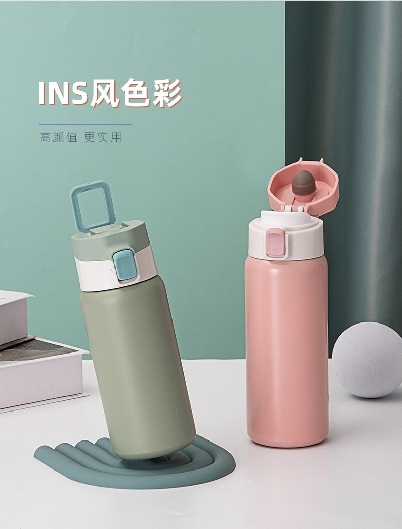 450ML简约纯色真空保温杯304不锈钢弹跳盖手提水杯