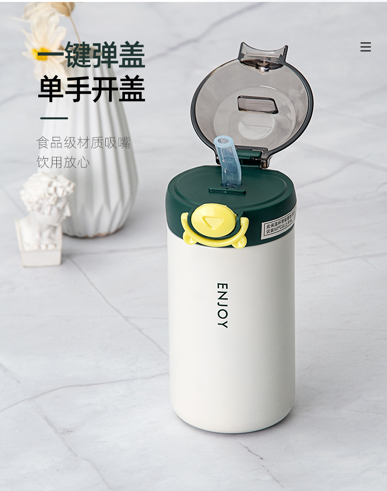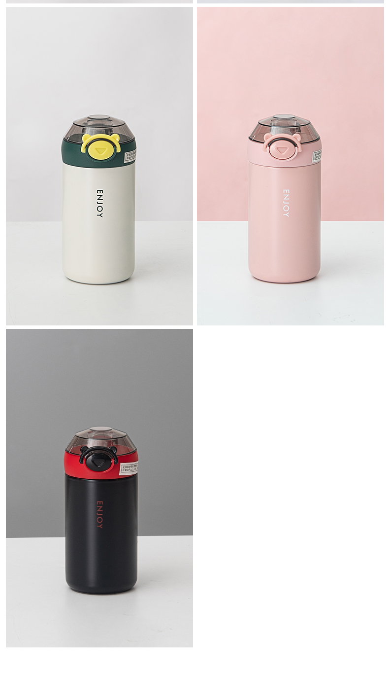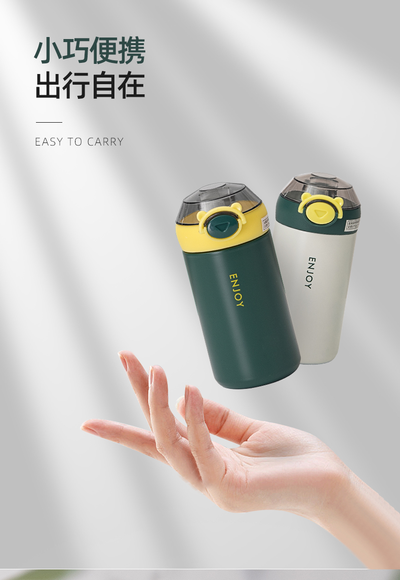 380ML悦酷弹盖萌熊保温杯学生可爱带提绳水杯随手杯