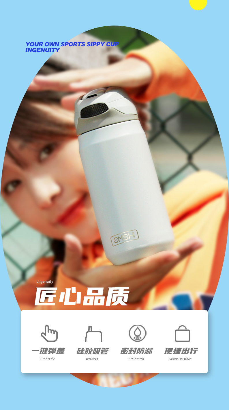 280ML萌趣背带吸管保温杯304不锈钢小巧弹跳盖水杯