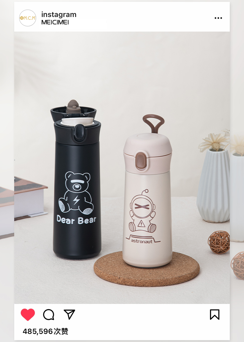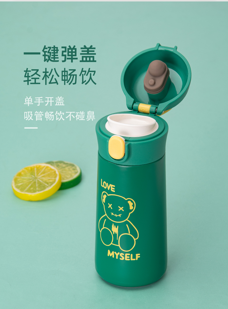 350ml日萌系列萌熊弹盖吸管保温杯时尚礼品定制水杯