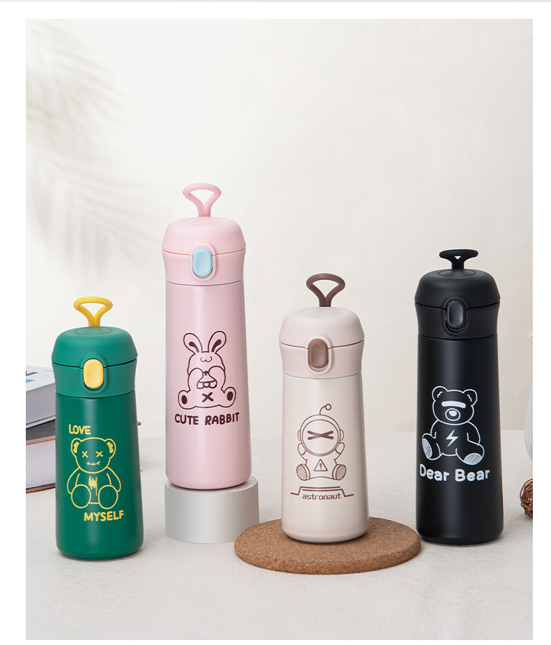 450ML商务弹跳保温杯卡通可爱动物少女心创意水杯子