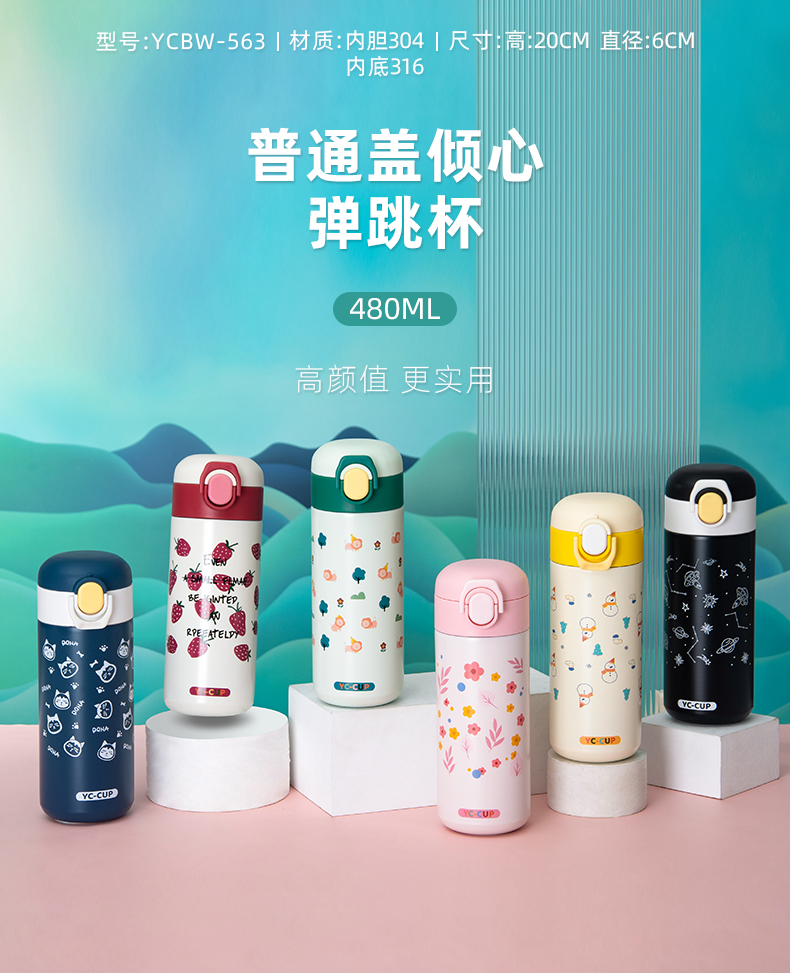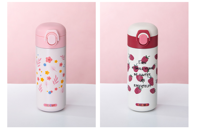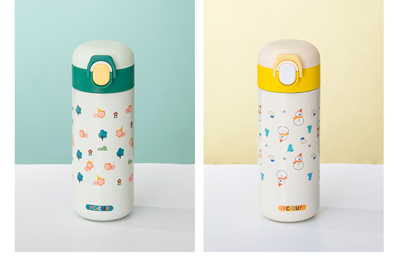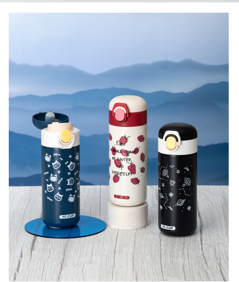380ML悦酷弹盖萌熊保温杯学生可爱带提绳水杯随手杯