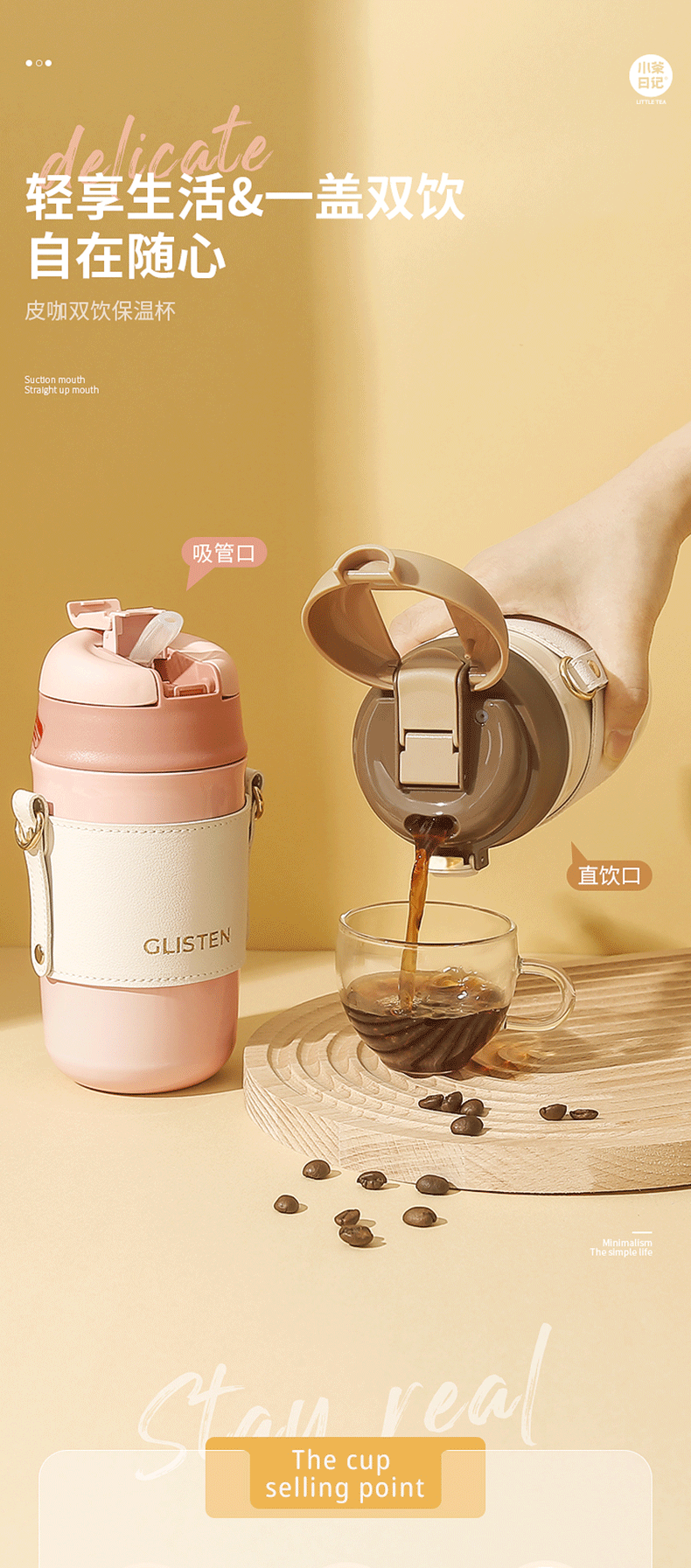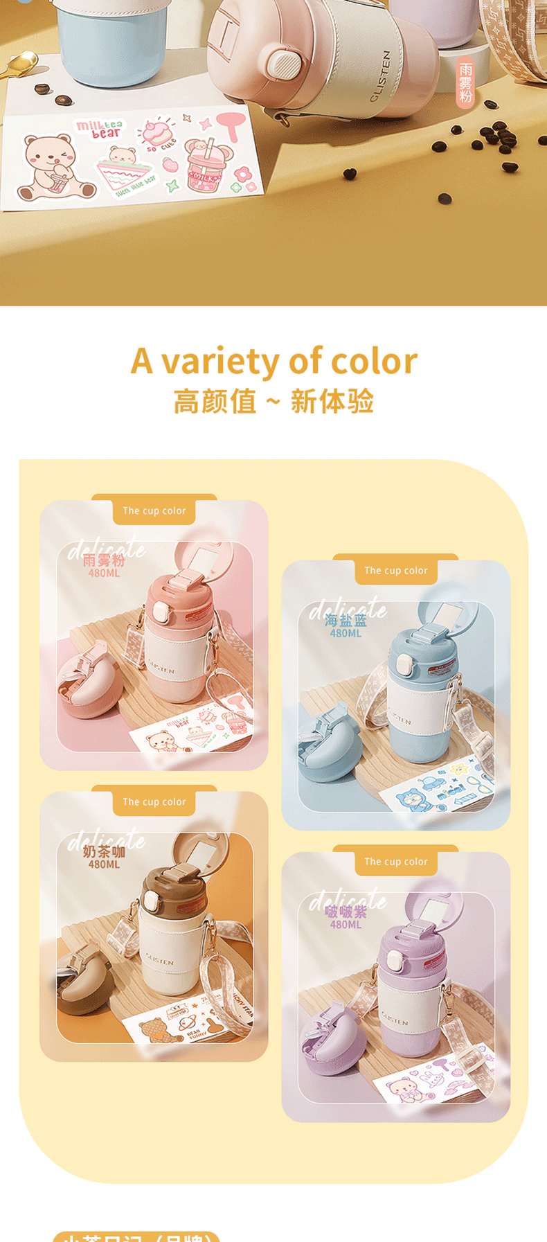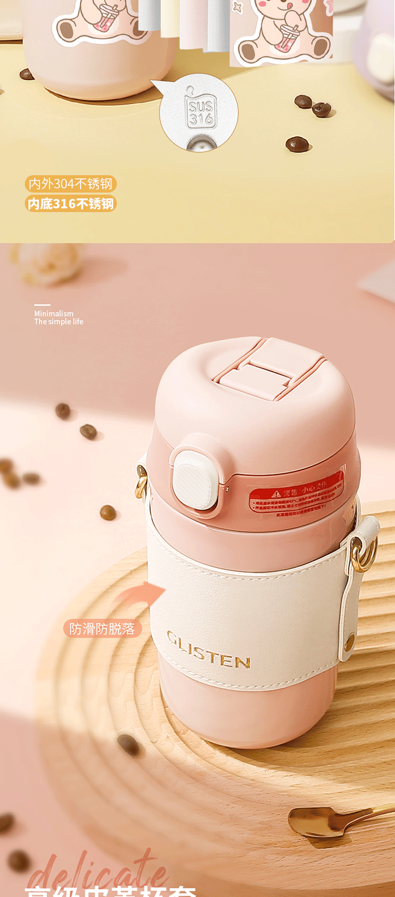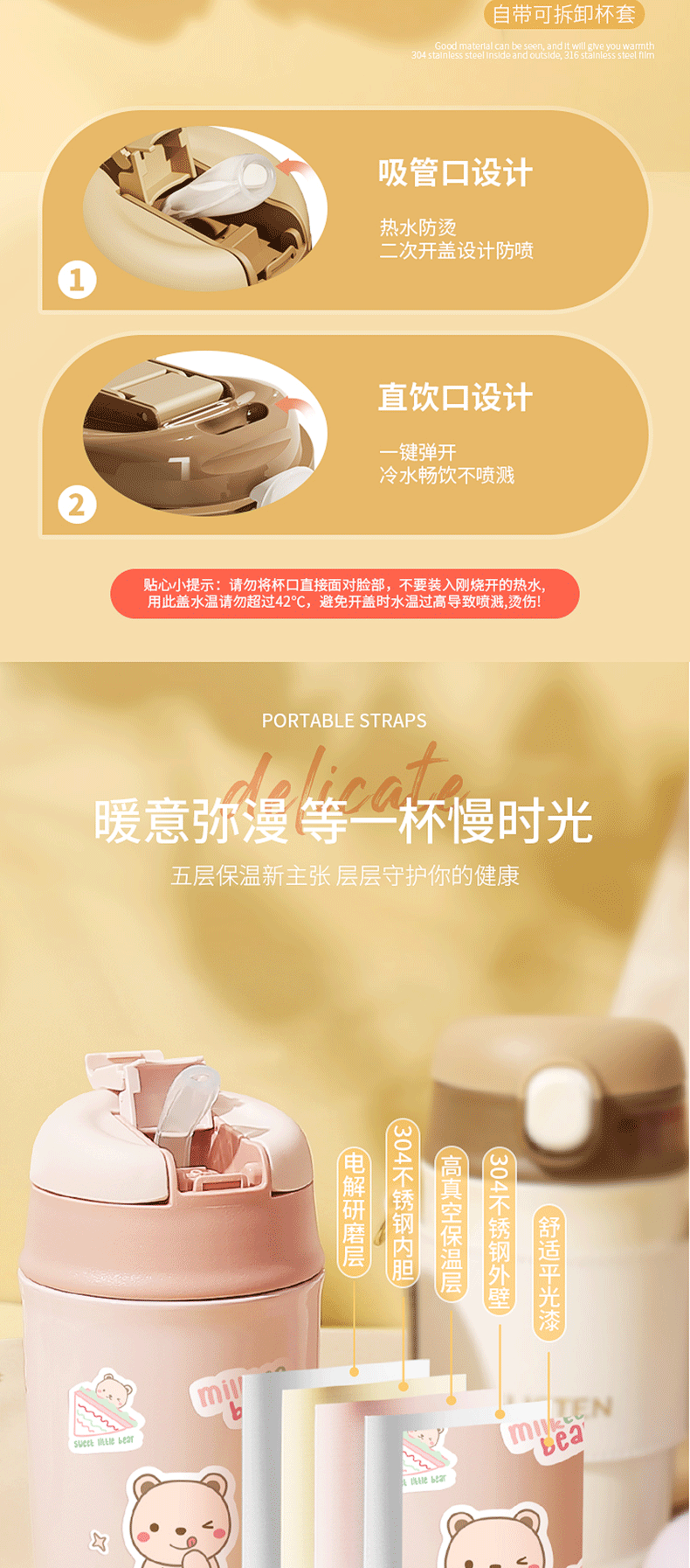 380mL哆趣保温杯304不锈钢卡通可爱少女心吸管杯