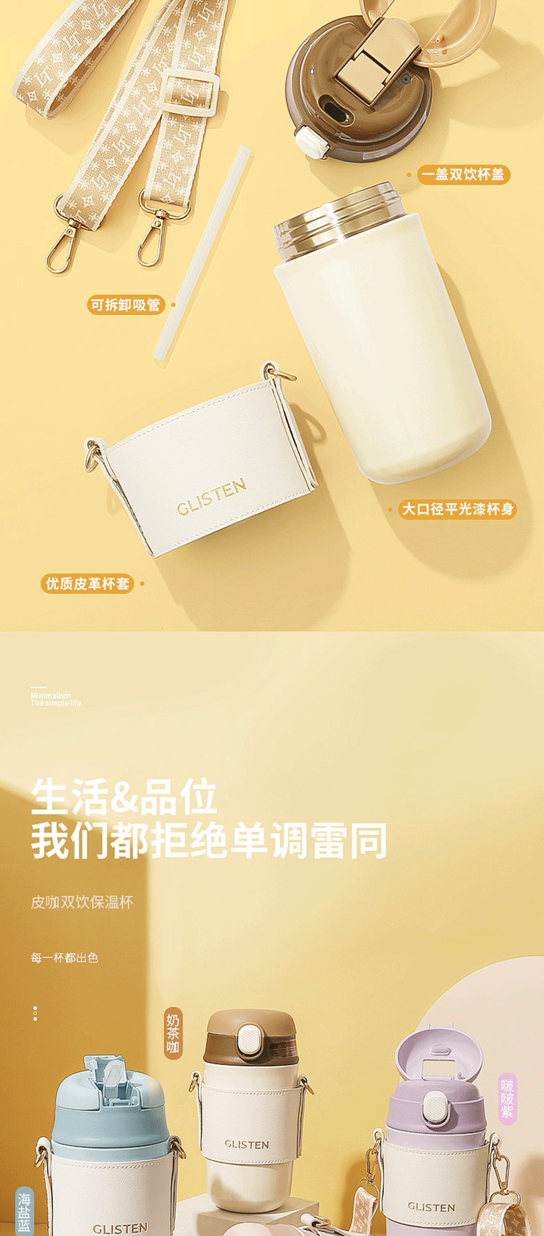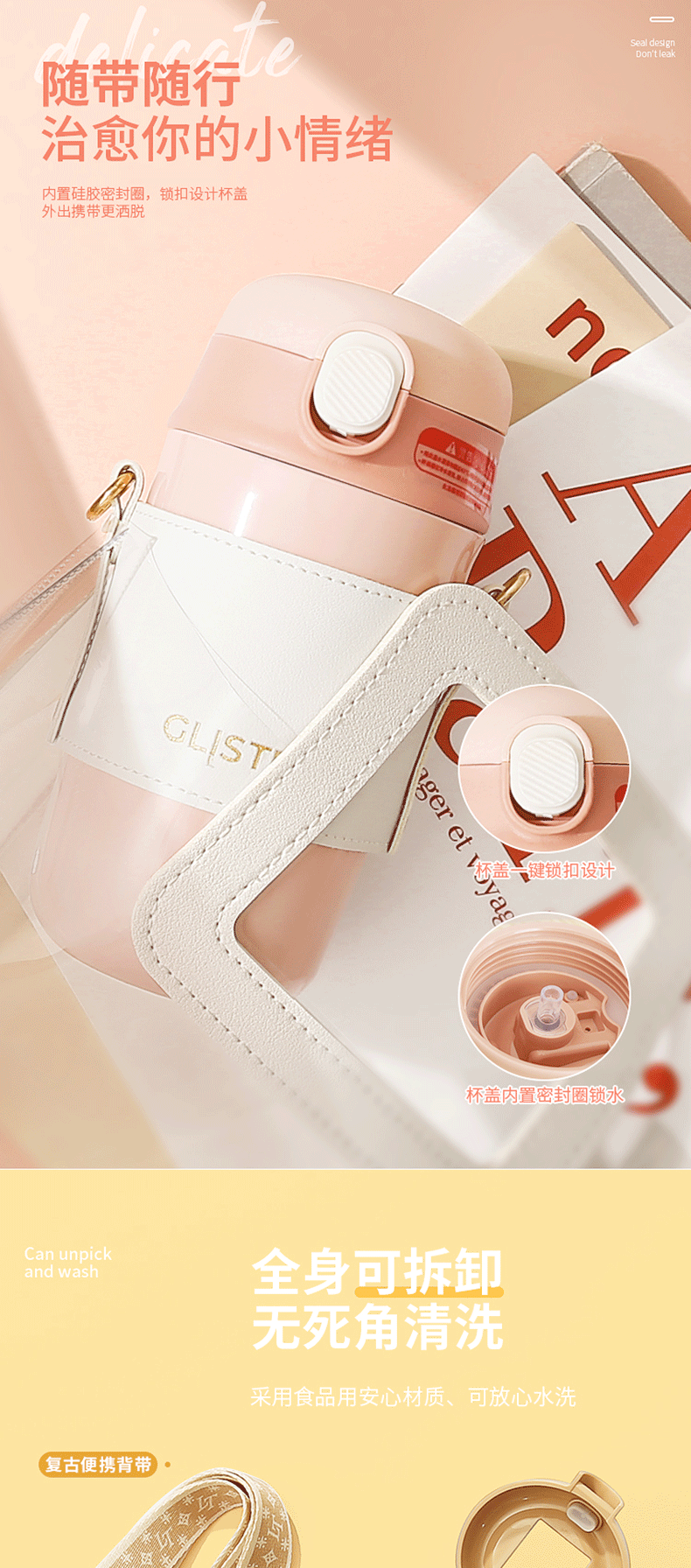 650ML背带提手胖胖保温杯简约ins风高颜值网红水杯