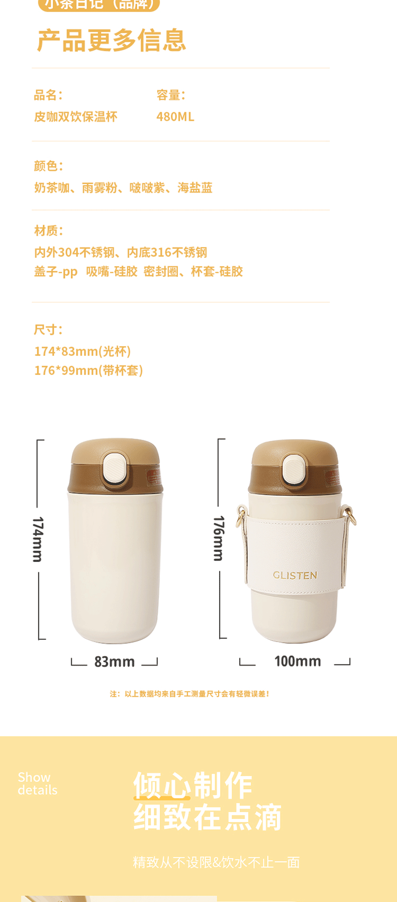 650ML背带提手胖胖保温杯网红ins风高颜值吸管水杯