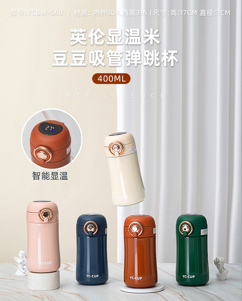 380ML悦享温显保温杯304不锈钢男女士商务办公水杯