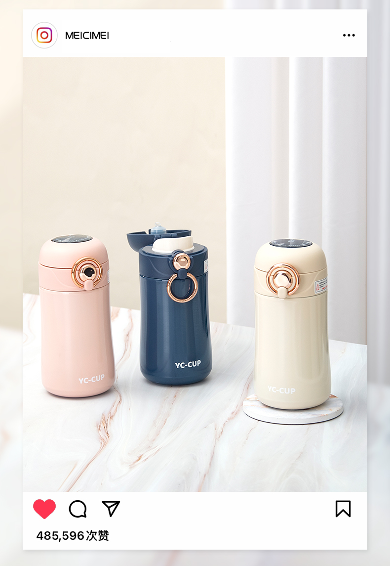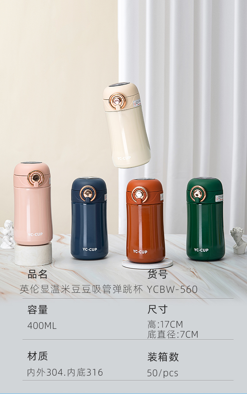 450ML商务弹跳保温杯卡通可爱少女心ins风创意水杯子