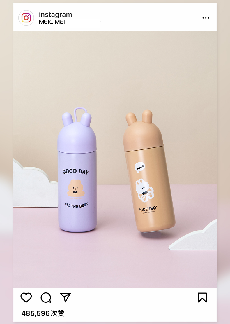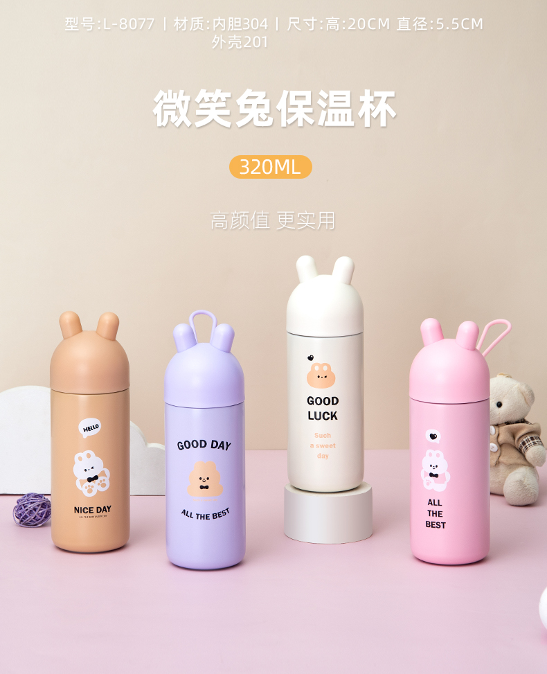 350ML卡通趣味熊兔保温杯304不锈钢小清新可爱水杯