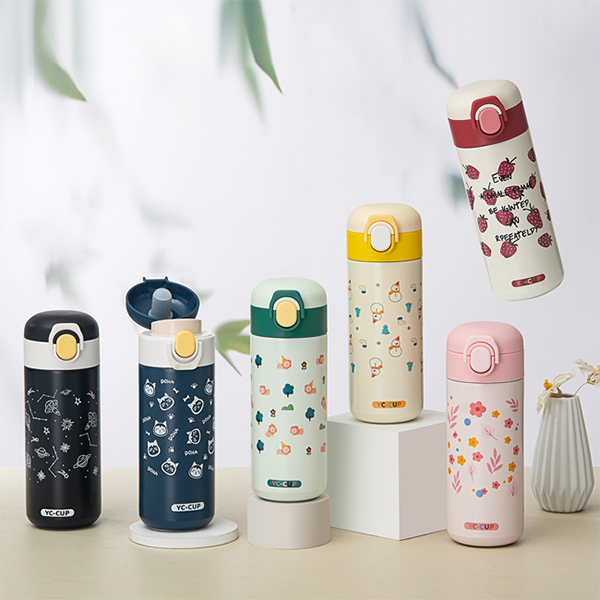 380ML悦酷弹盖萌熊保温杯学生可爱带提绳水杯随手杯