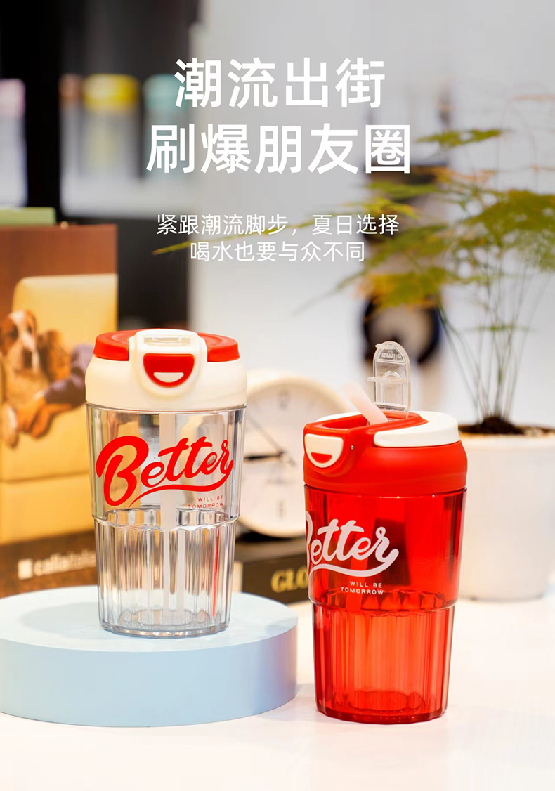 400ML乐枫双饮口咖啡塑料杯高颜值直饮吸管水杯(彩盒)