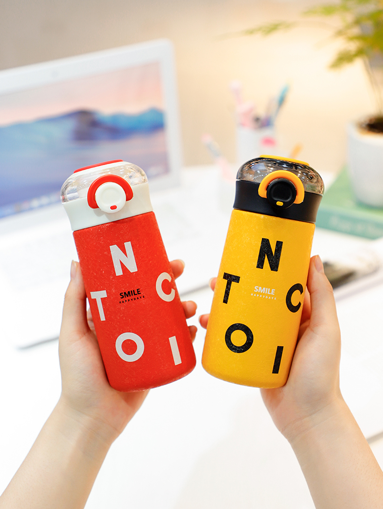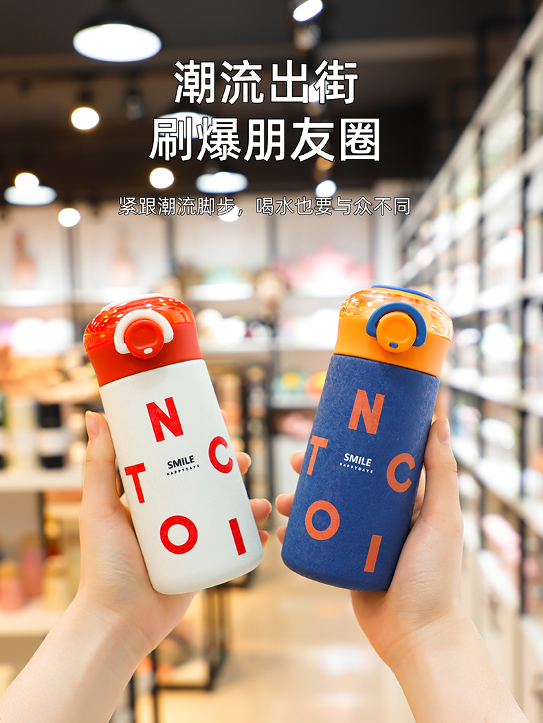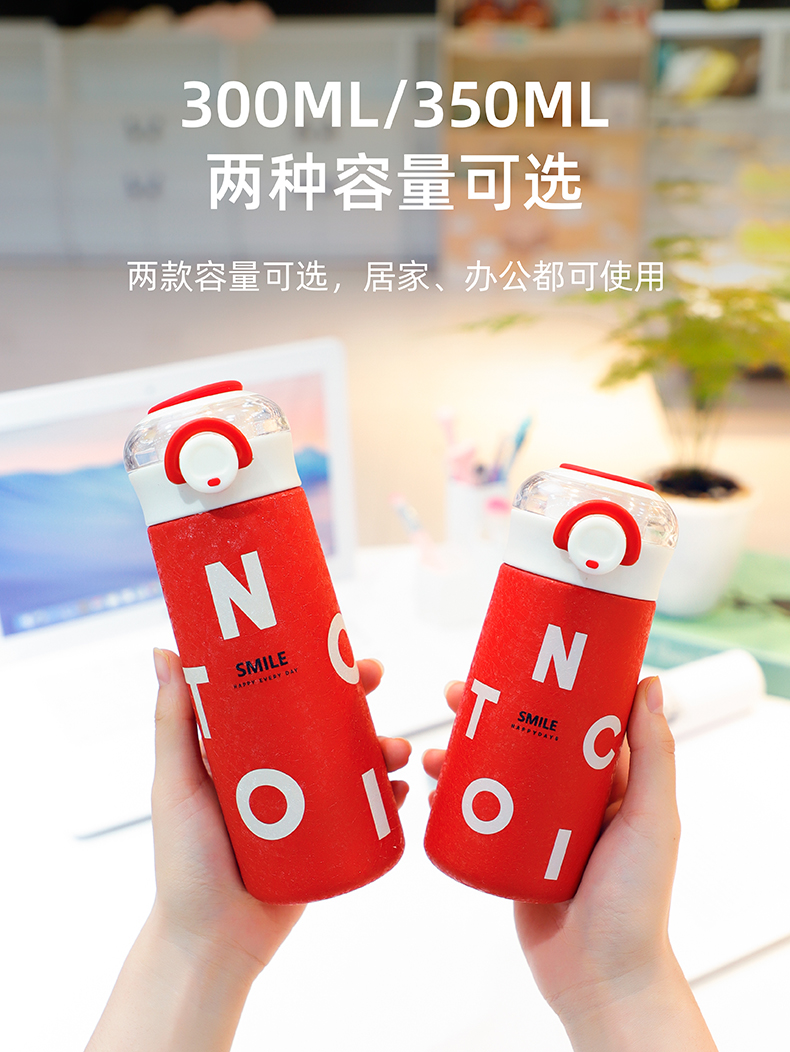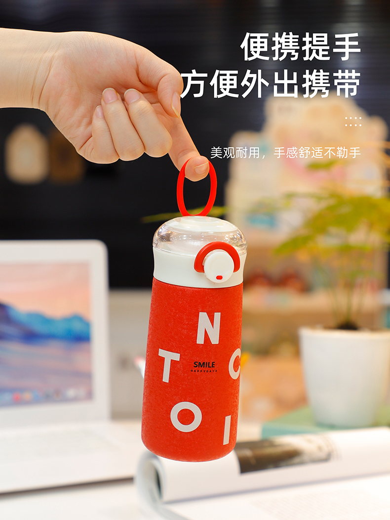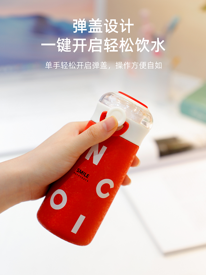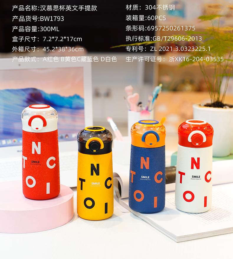 350ML英文手提款汉慕思保温杯304不锈钢弹跳盖水杯