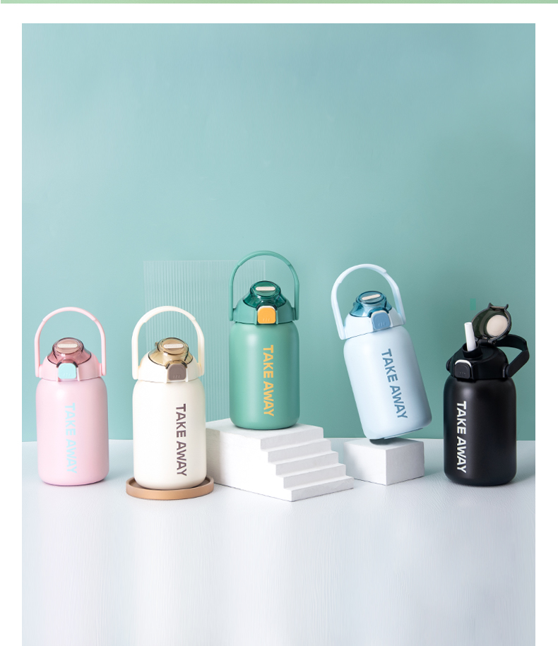 600ML喷塑提手保温杯304不锈钢大容量简约运动水杯