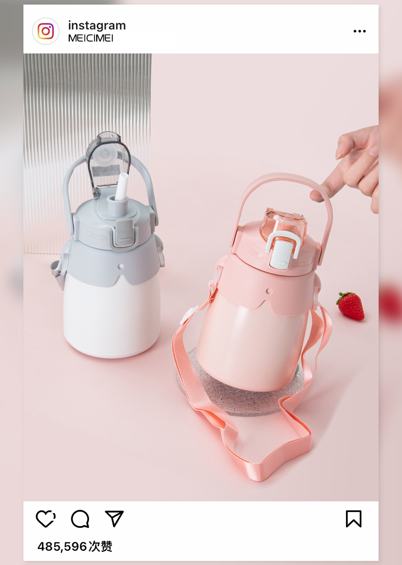 980ML背带款提手瘦腰保温杯大容量304不锈钢便携水杯