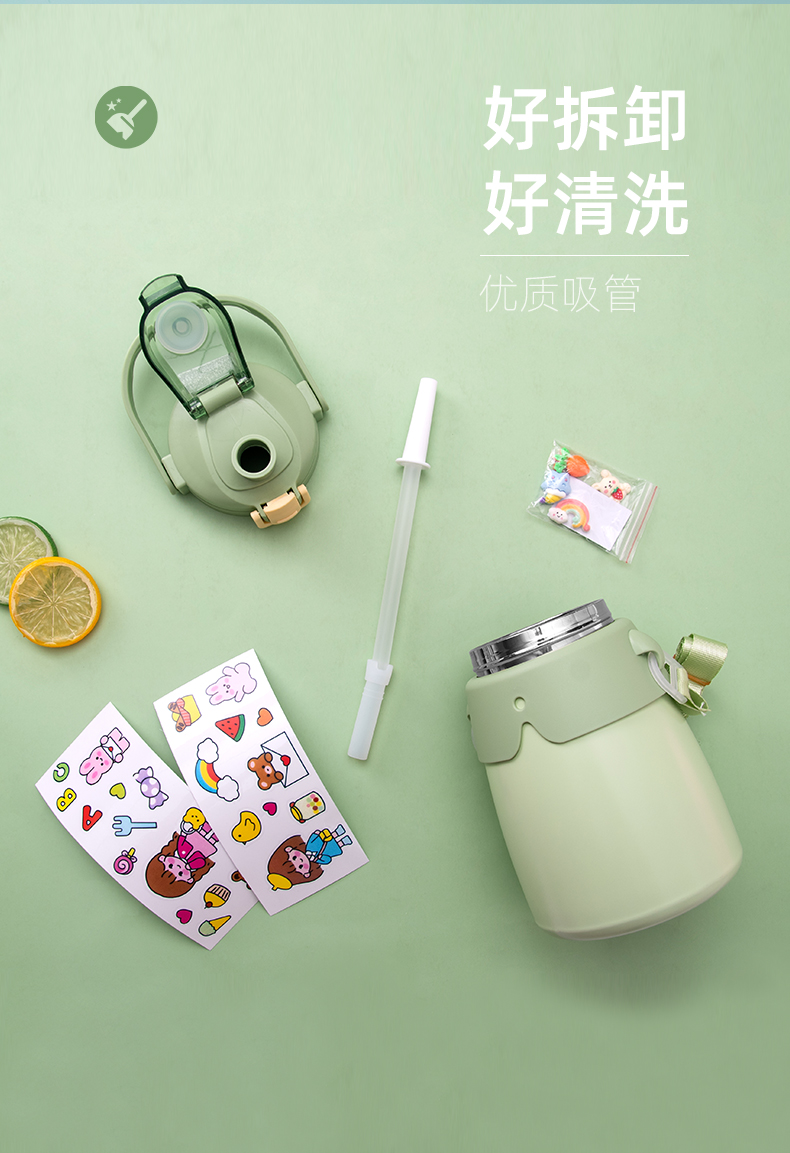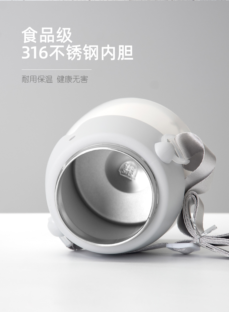 480ML卡通萌兔背带保温杯316不锈钢可爱吸管水杯子