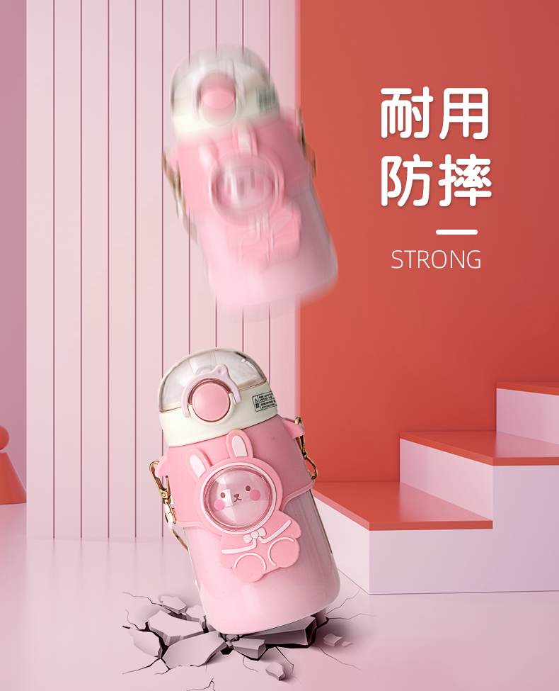 样品星兔创意卡通水杯儿童弹跳吸管杯可爱运动户外背带学生塑料杯