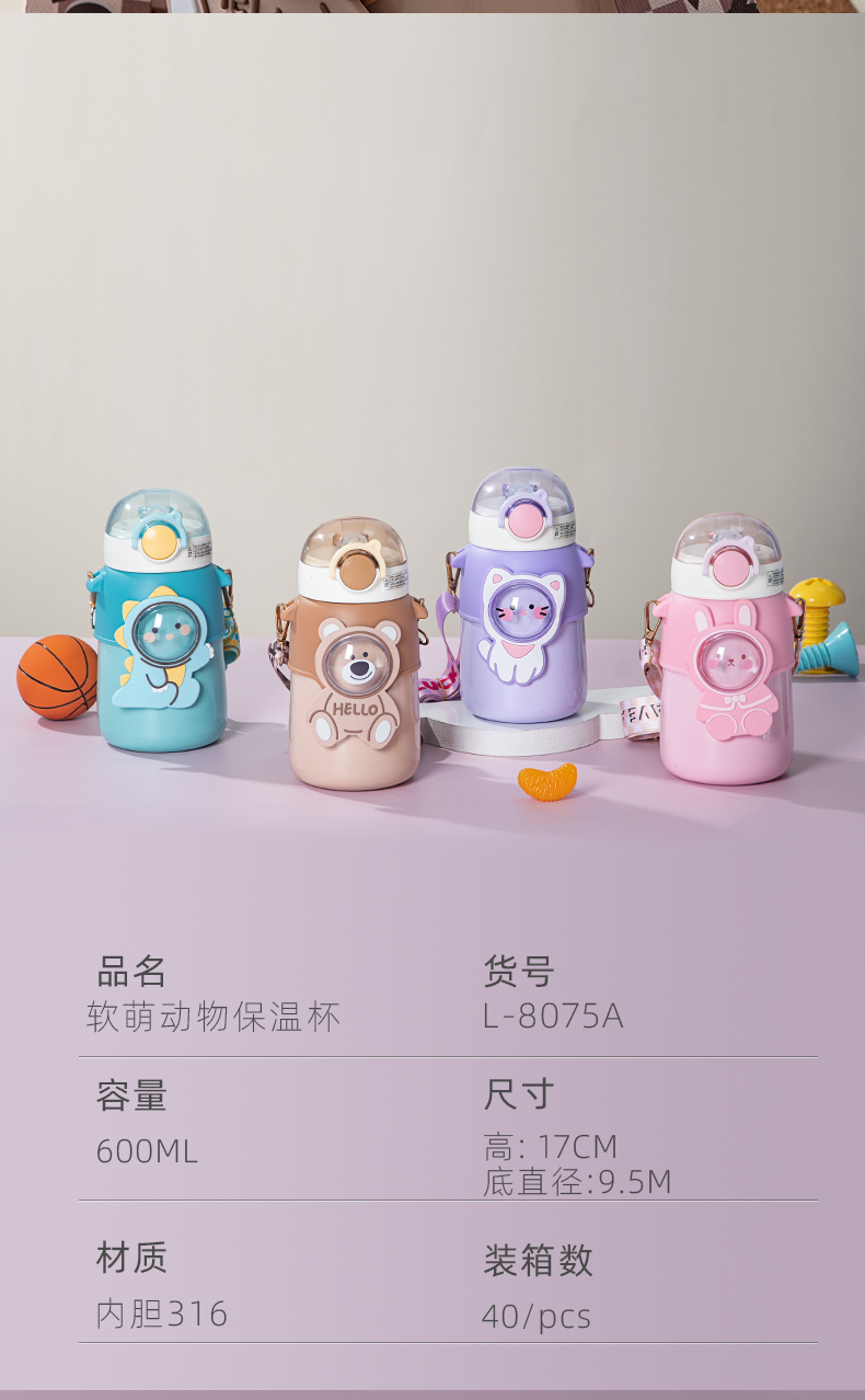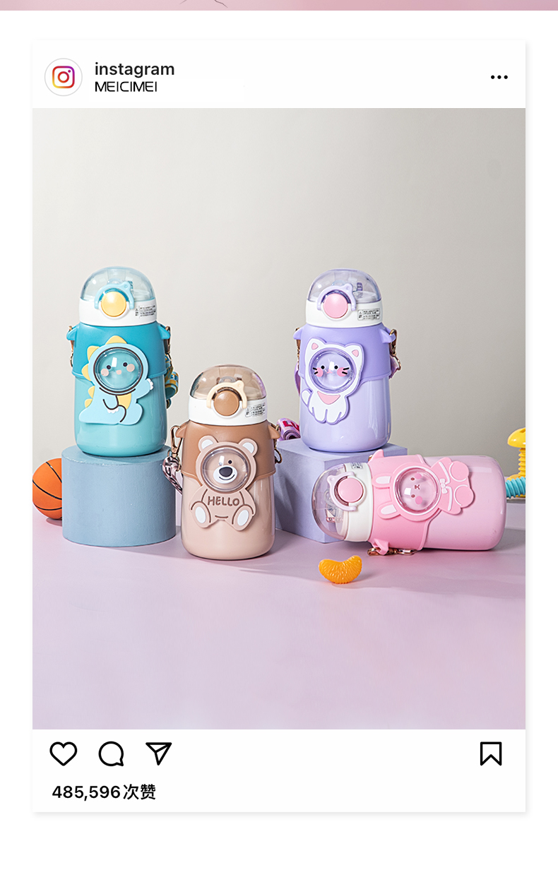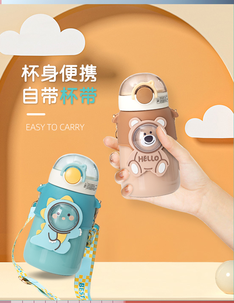 510ML小团子保温杯304不锈钢卡通可斜跨弹跳吸管杯