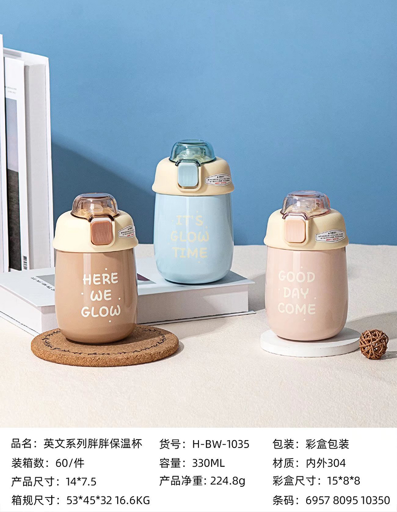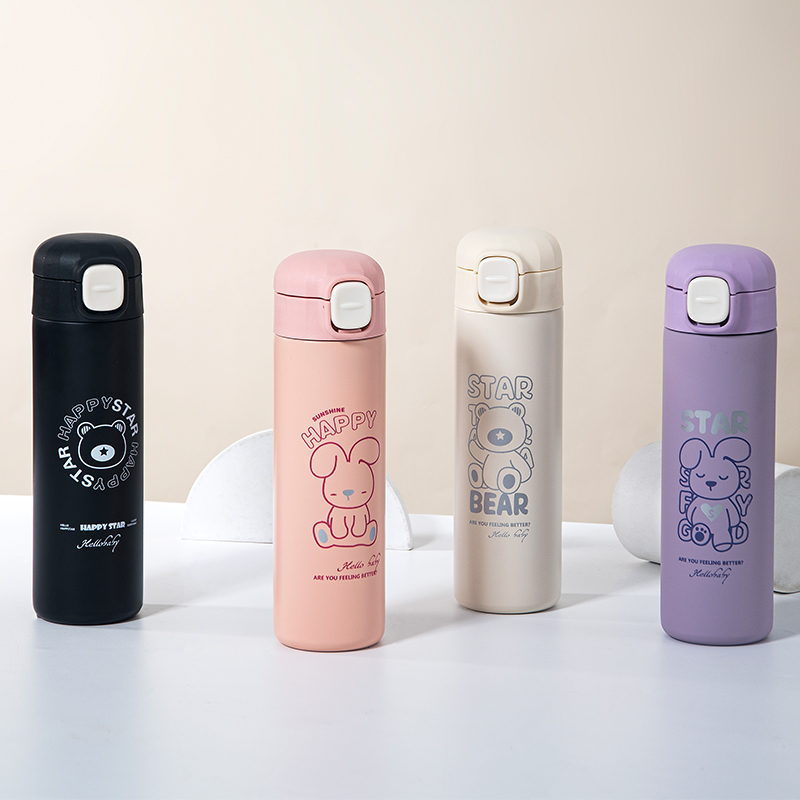 450ML商务弹跳保温杯卡通可爱动物少女心创意水杯子