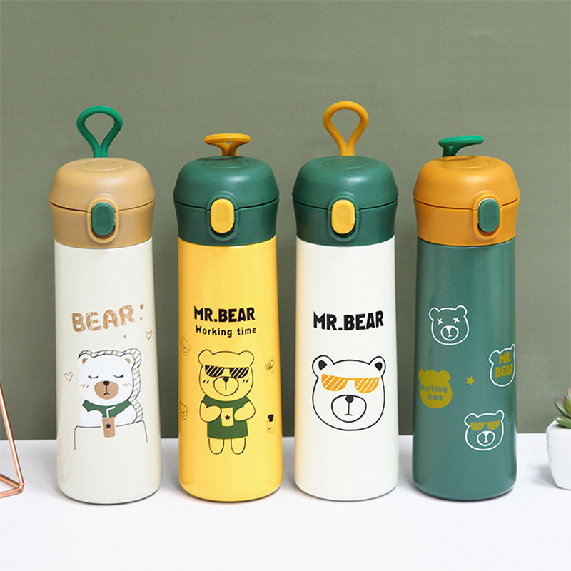 500ML悦酷弹盖萌熊保温杯学生可爱带提绳水杯随手杯
