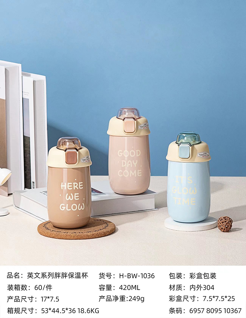 350ML英文撞色款汉慕思保温杯304不锈钢清新弹盖水杯