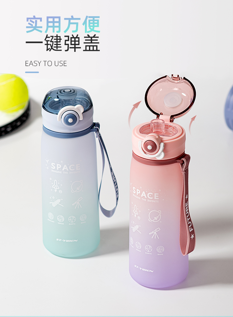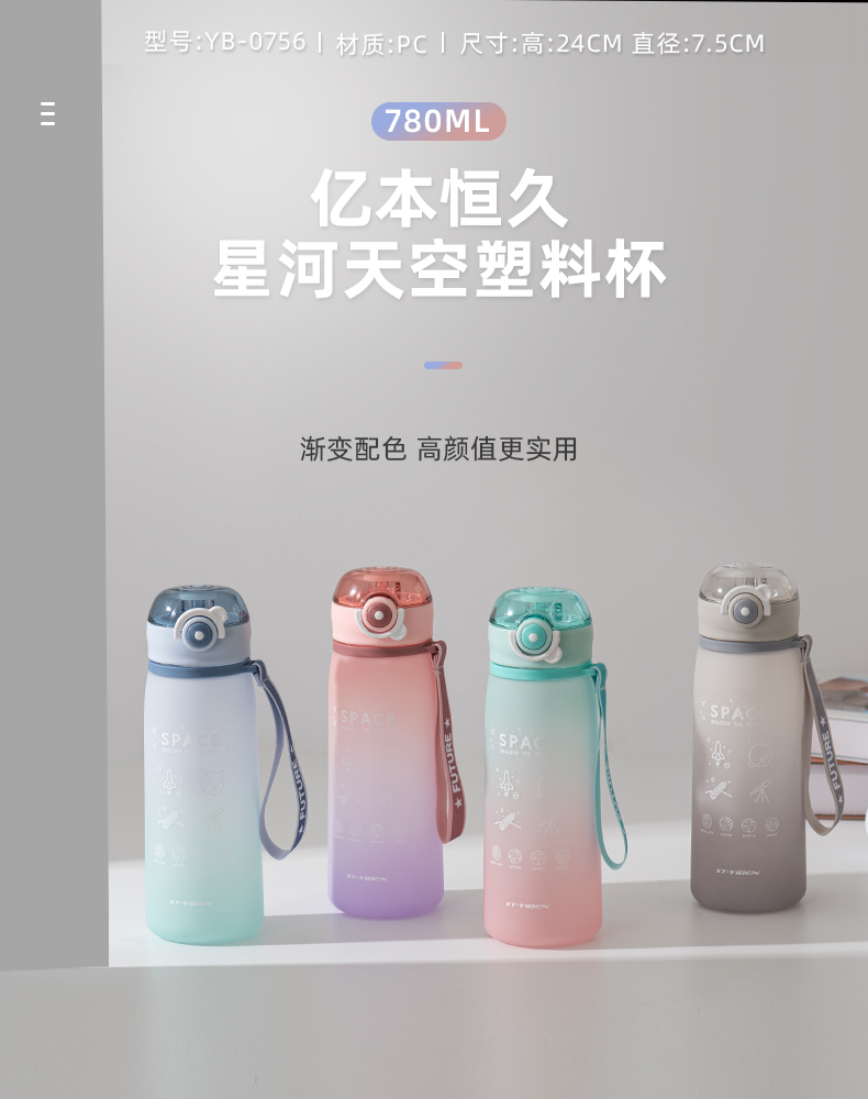 500ML亿本悦色太空杯创意手提绳便携带塑料杯