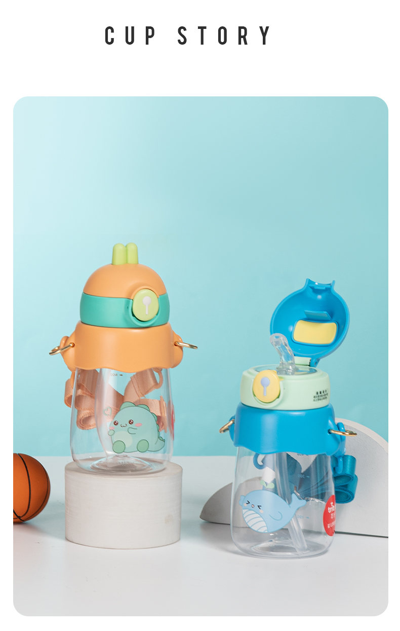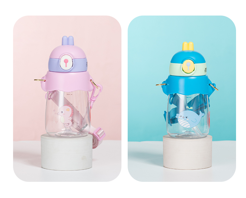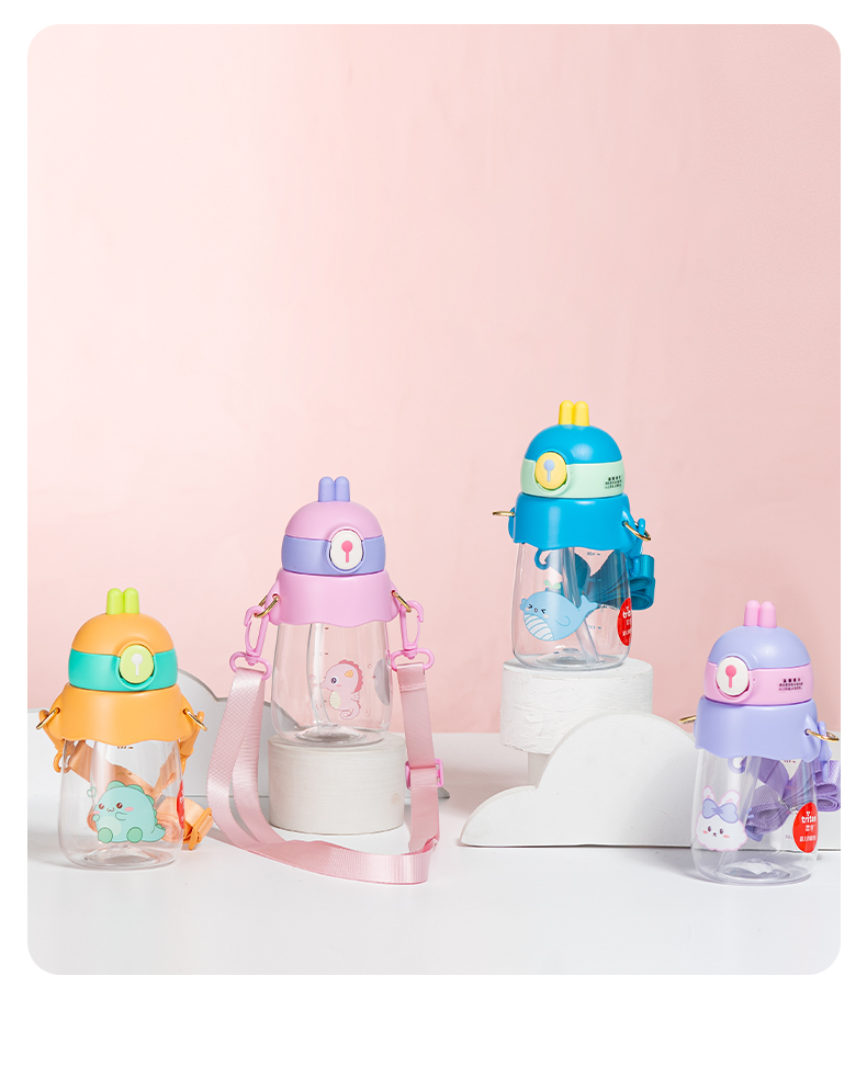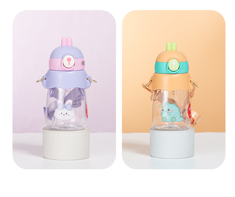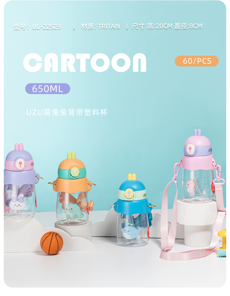 样品星兔创意卡通水杯儿童弹跳吸管杯可爱运动户外背带学生塑料杯