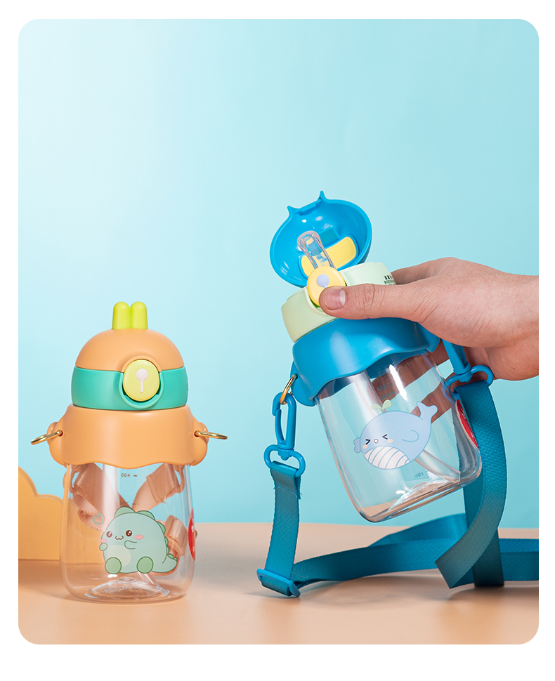 600ML卡通鹿角可爱儿童塑料杯便携背带弹盖吸管水杯