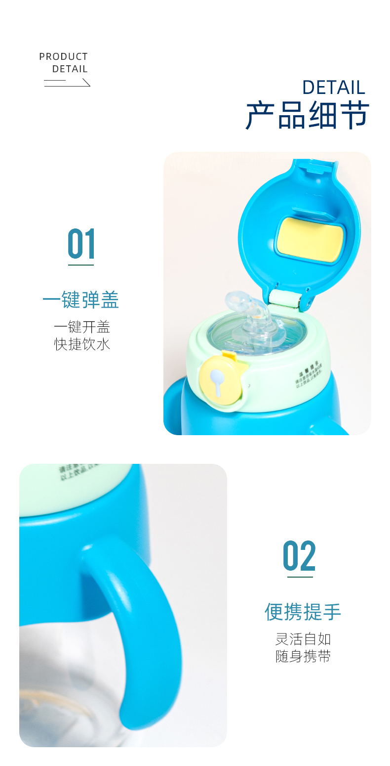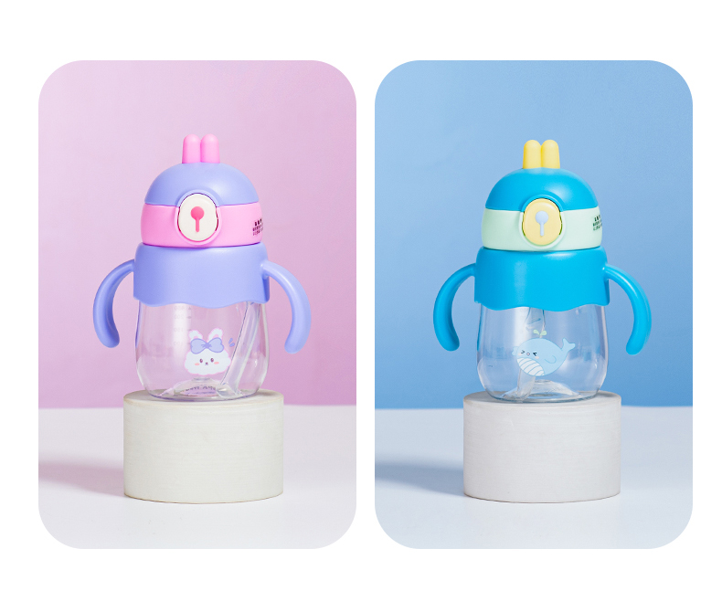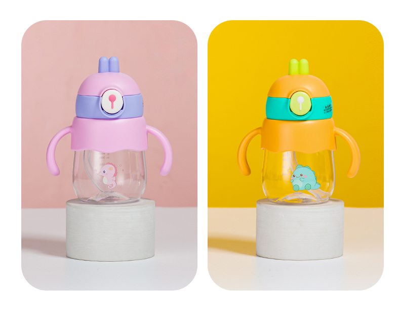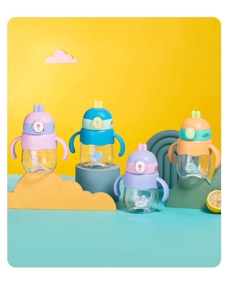 样品星兔创意卡通水杯儿童弹跳吸管杯可爱运动户外背带学生塑料杯