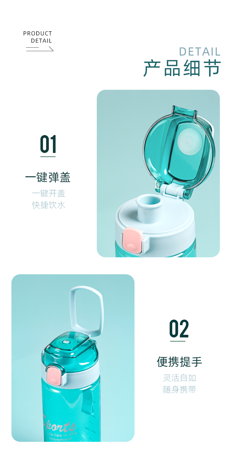 850ML亚奇乐运动塑料杯户外便携弹跳盖水杯(OPP袋)